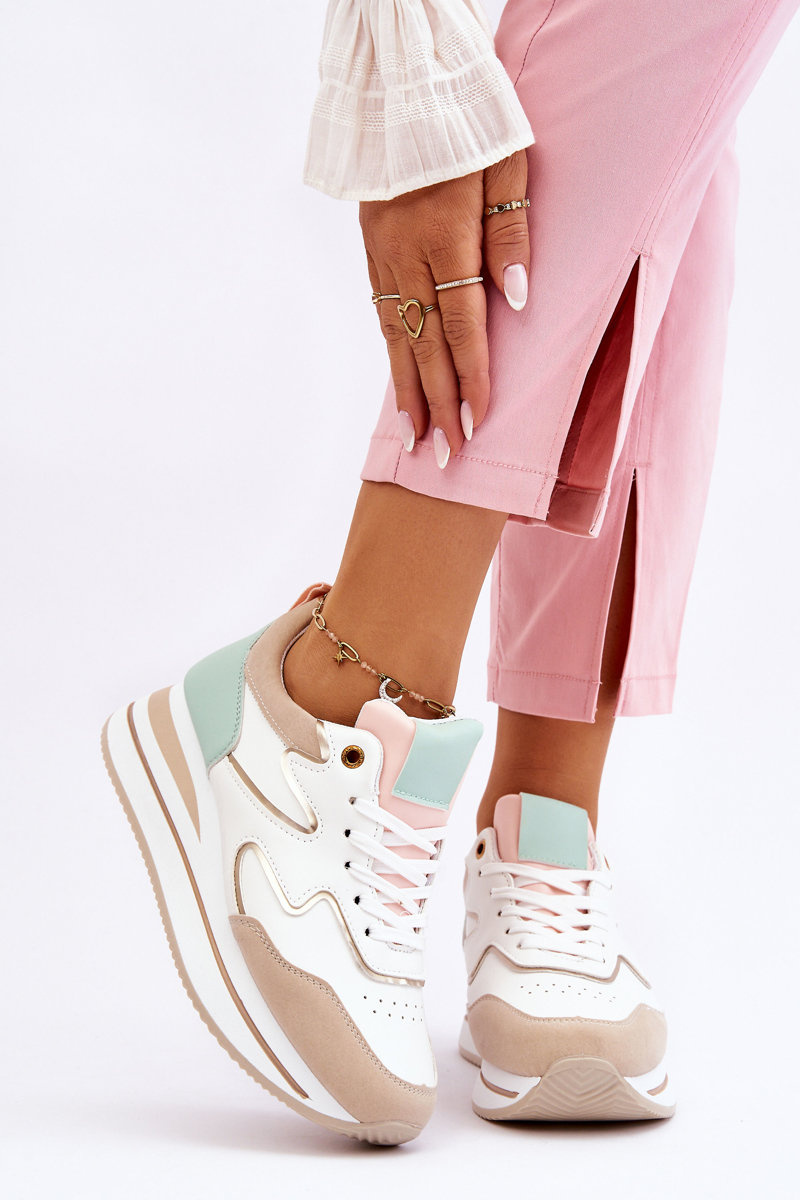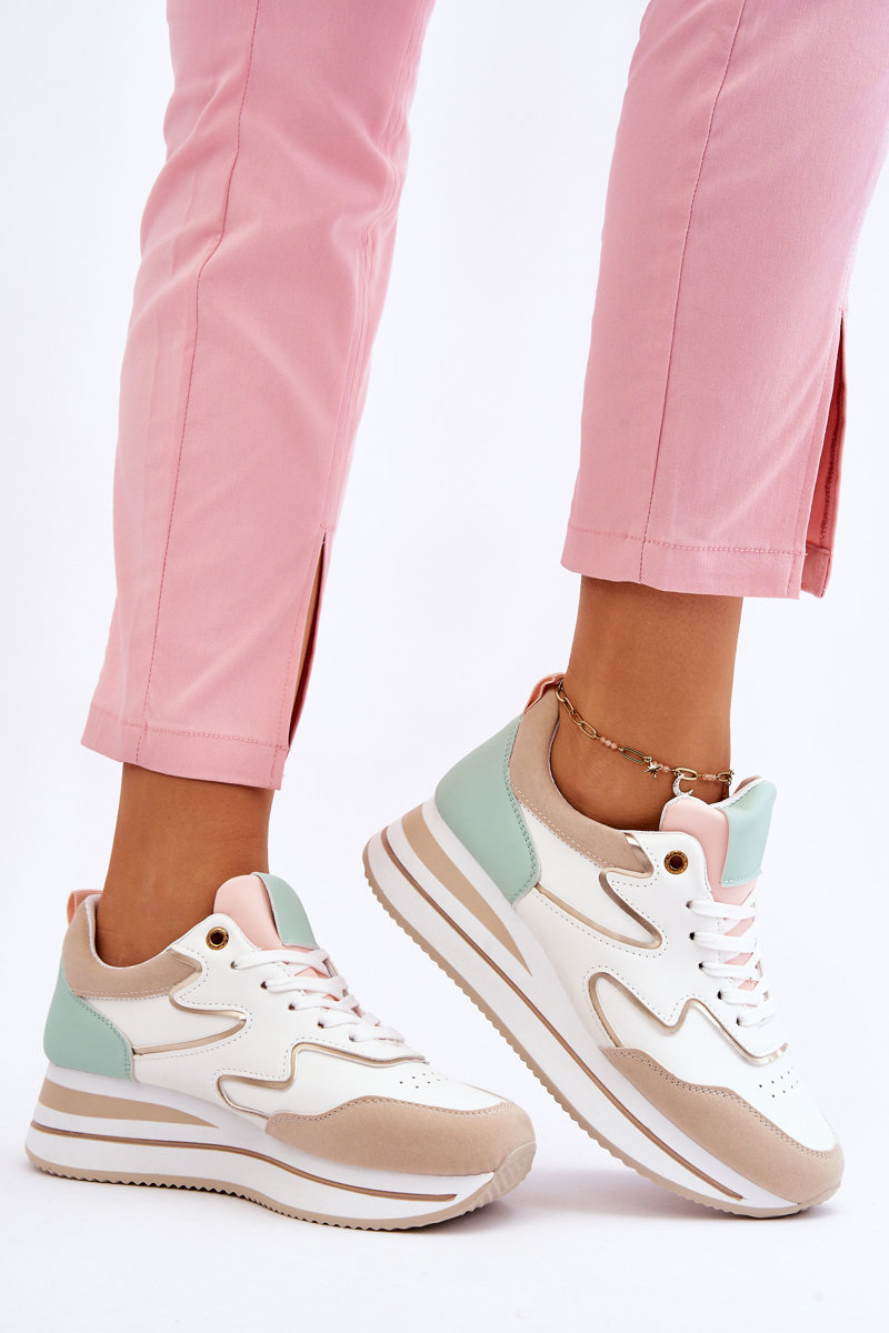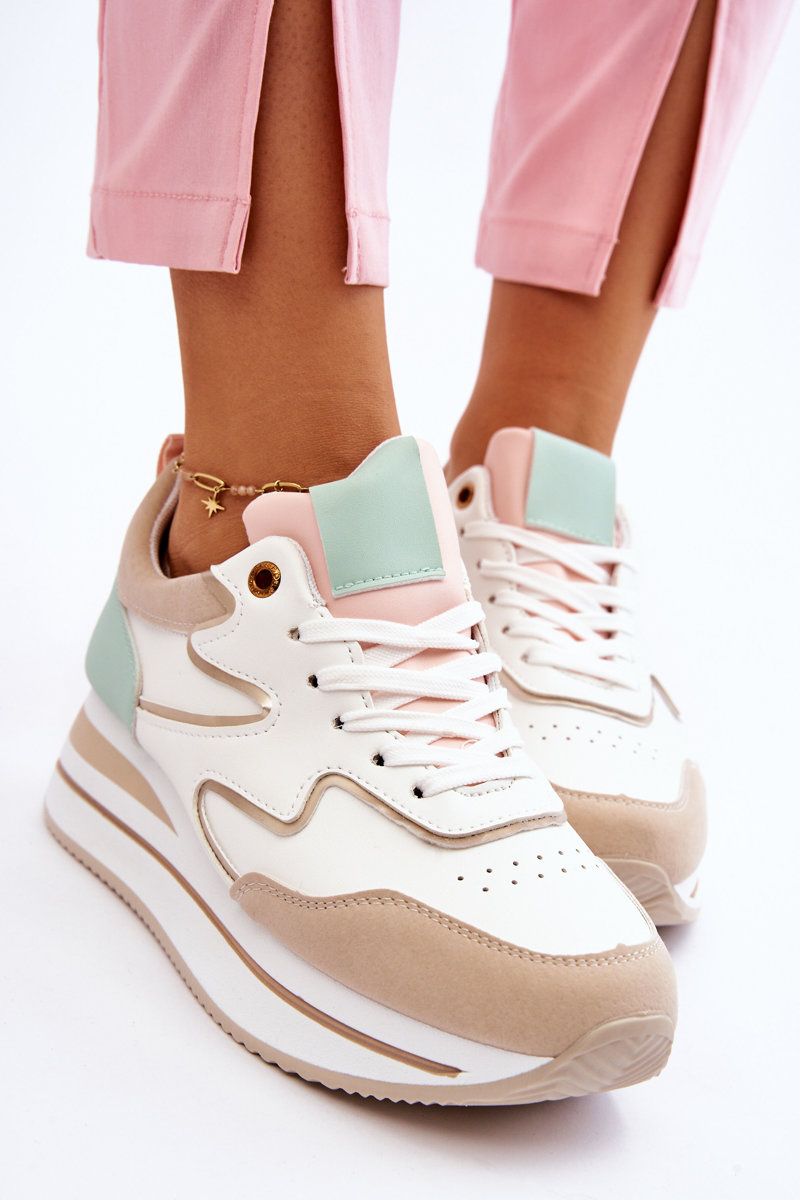 Modne Skórzane Buty Sportowe Biało-Beżowe Roen