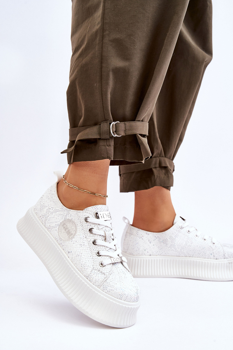 Świetne sneakersy damskie wykonane z wysokiej jakości eko skóry. Ten modny fason idealnie będzie komponował się z codziennymi stylizacjami. Klasycznie sznurowany model posiada z boku gumowy emblemat z logo marki GOE. Miękka, eko skórzana wkładka sprawi, że będziesz czuć się w nich komfortowo przez cały dzień. Masywna platforma posiada żłobienia po bokach. Przy wyborze rozmiaru prosimy sugerować się tabelą rozmiarów.