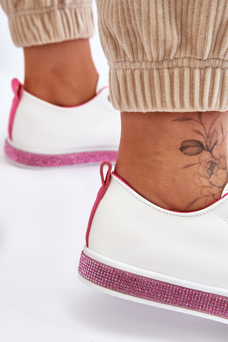Niskie Trampki Damskie Z Dżetami Biało-Różowe Demira