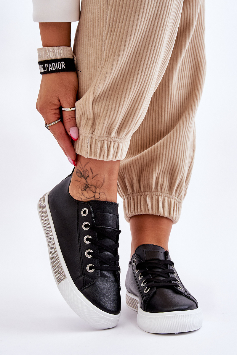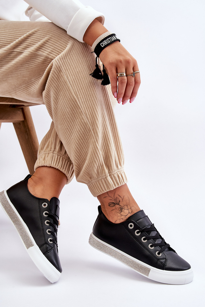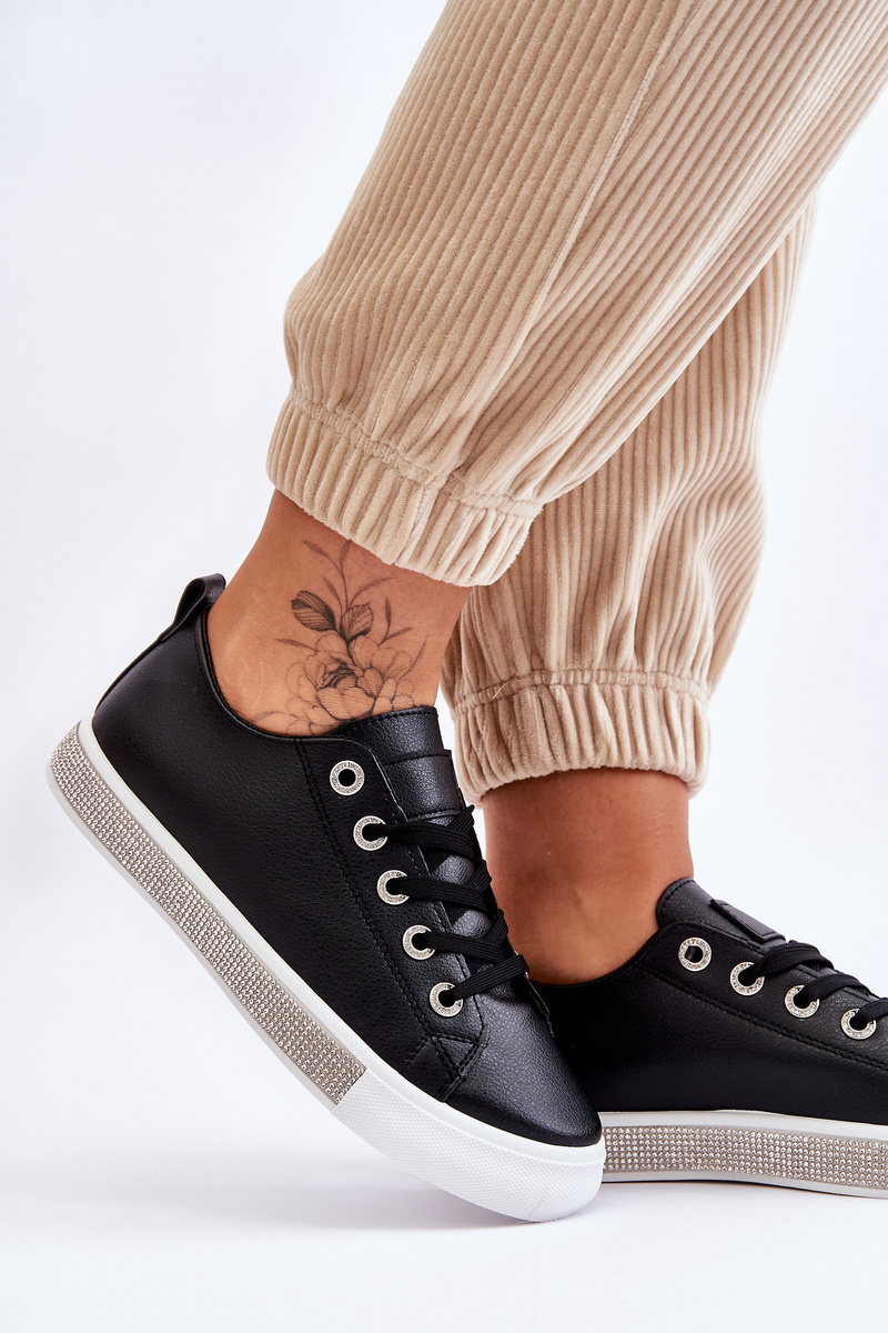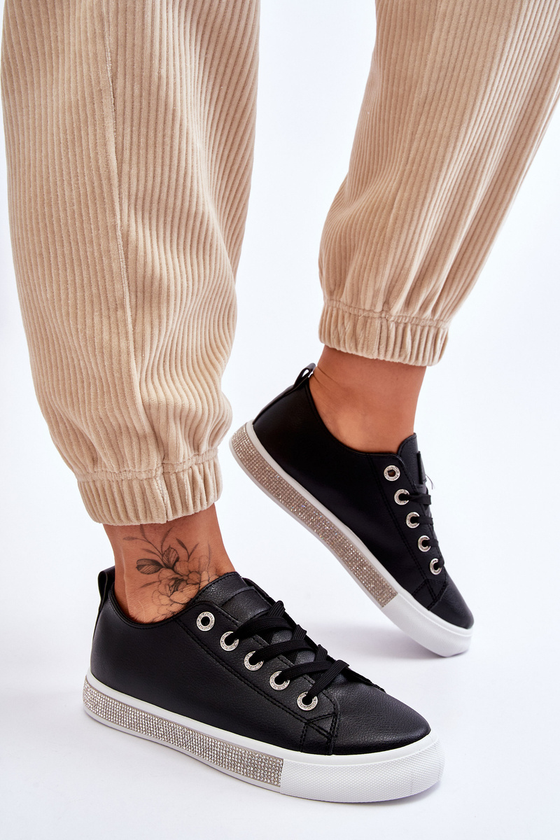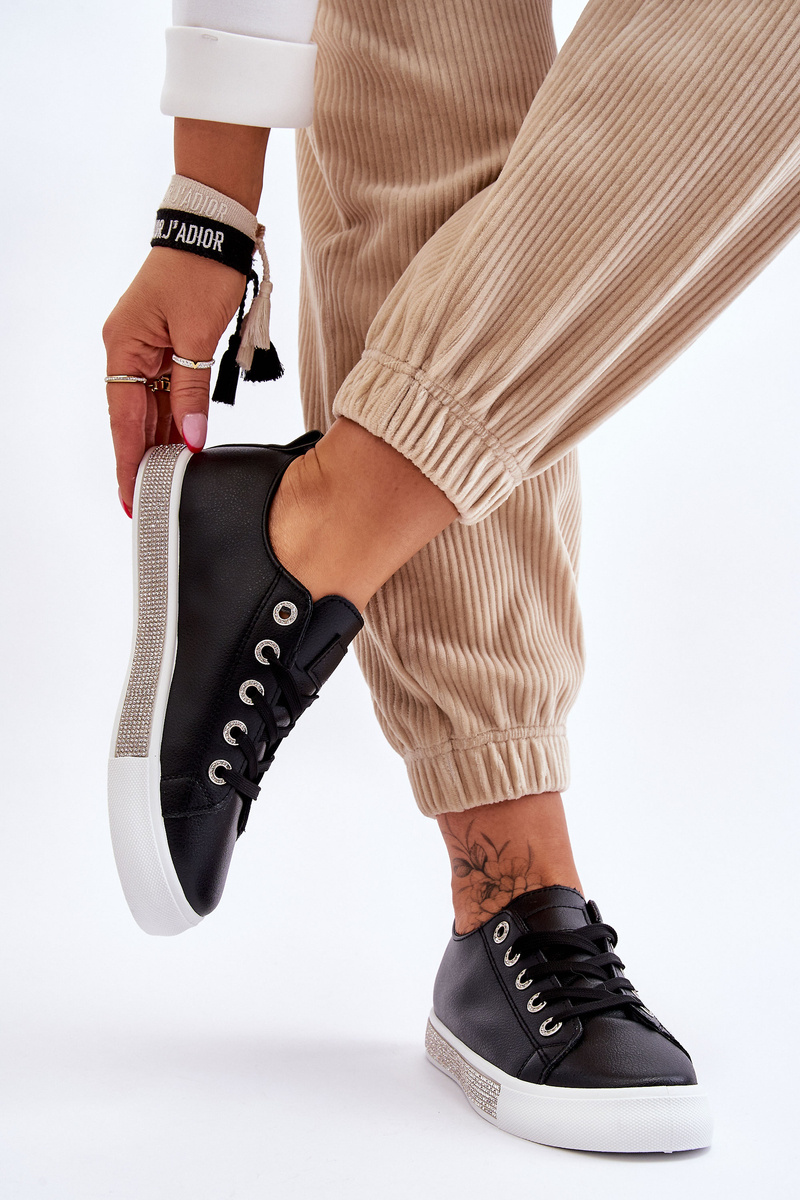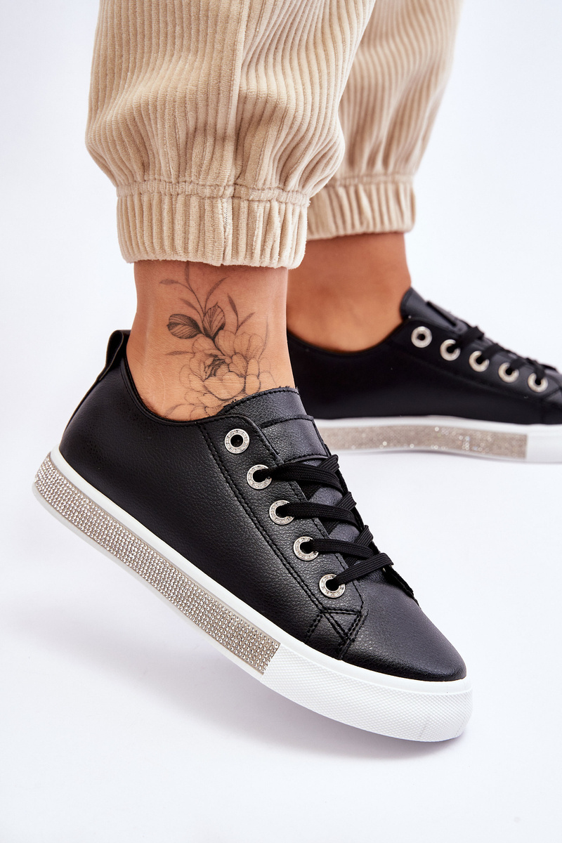 Niskie Trampki Damskie Z Dżetami Czarno-Białe Demira