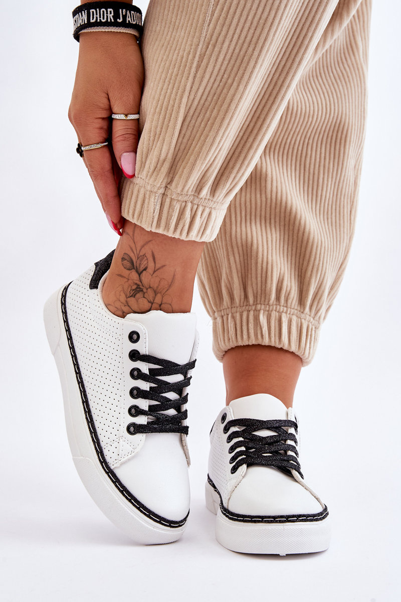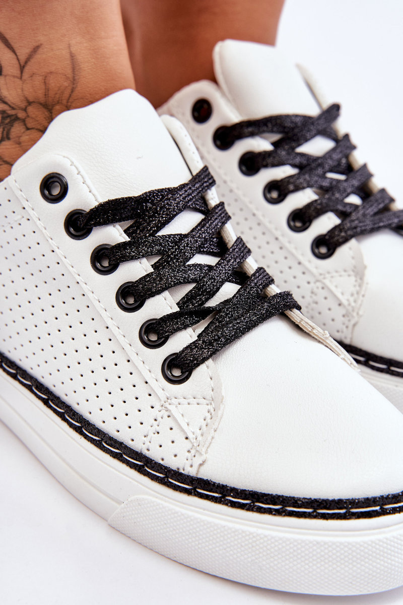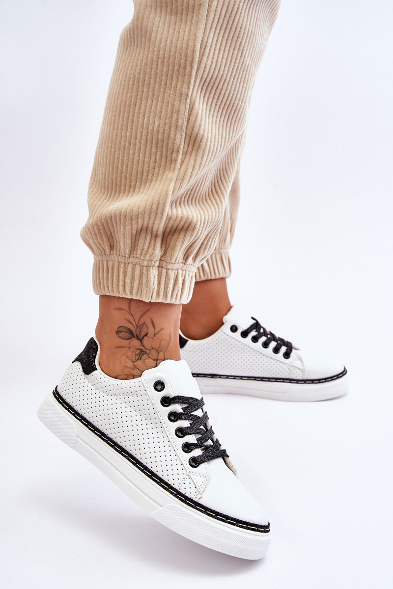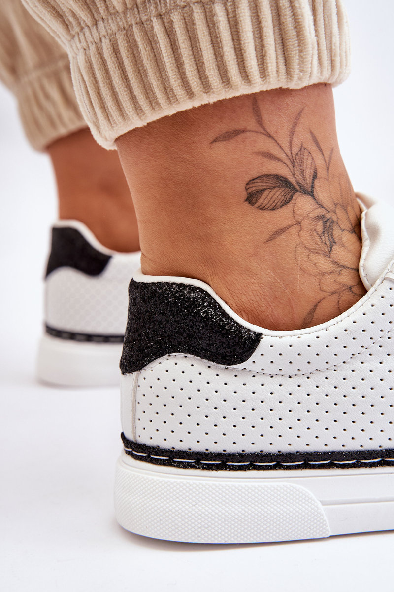 Niskie Damskie Trampki Z Perforacją Biało-Czarne Daxton
