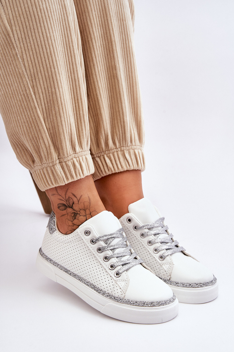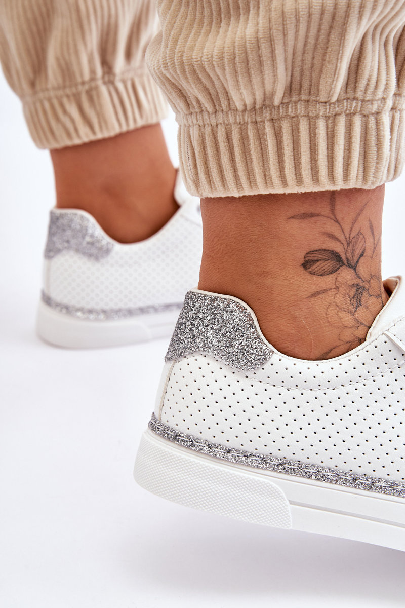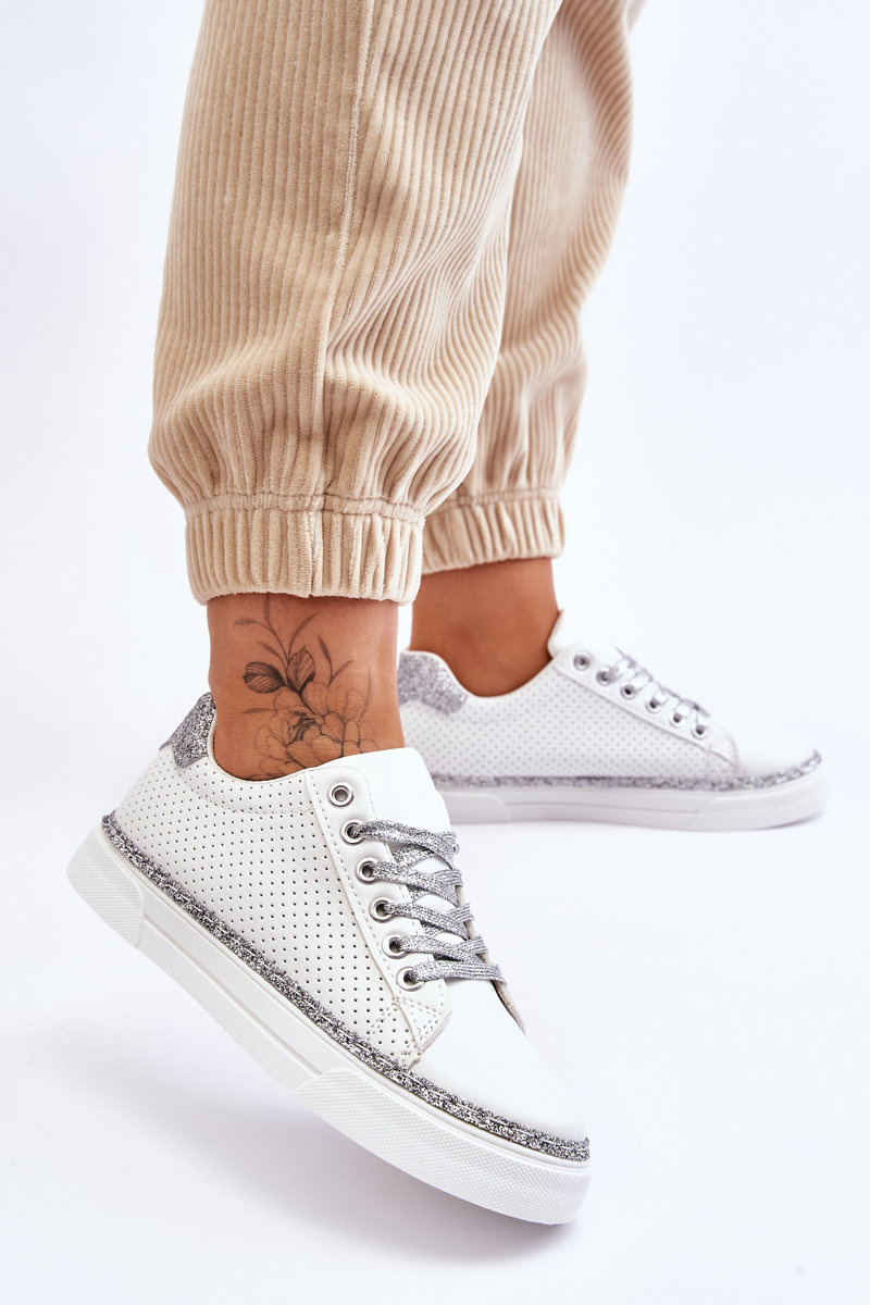 Niskie Damskie Trampki Z Perforacją Biało-Srebrne Daxton
