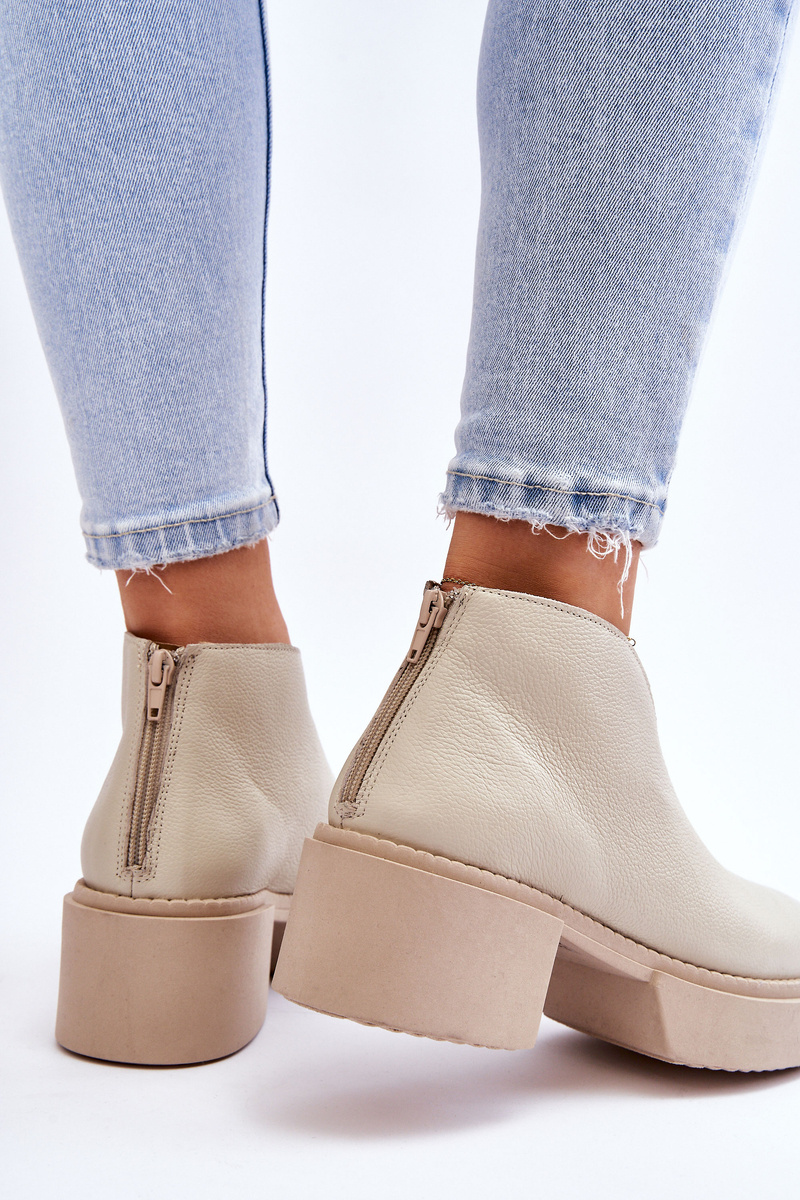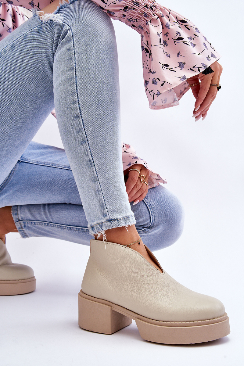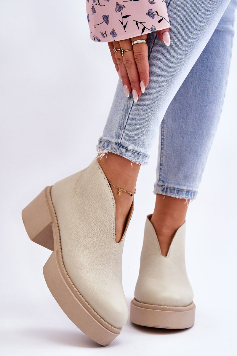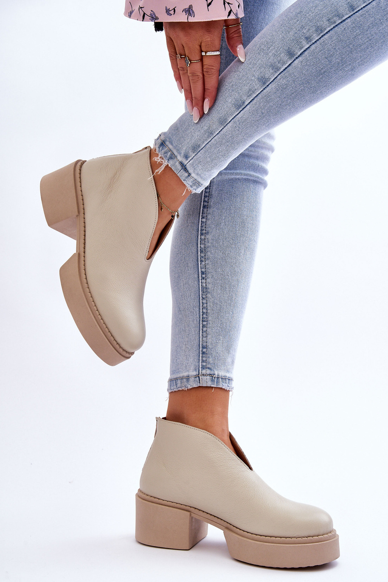Skórzane Botki Na Masywnym Obcasie Nicole 2795/054 Jasnobeżowe