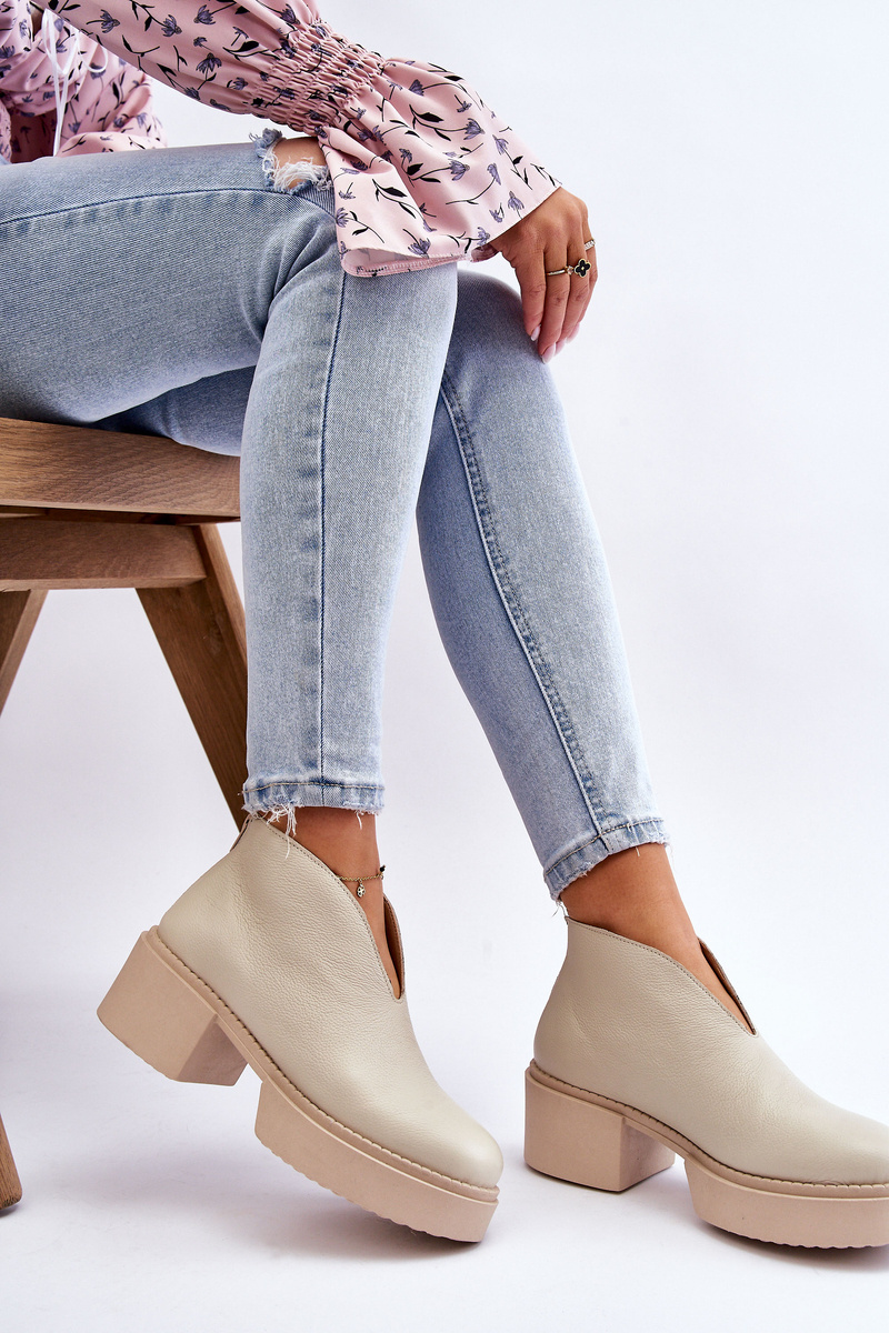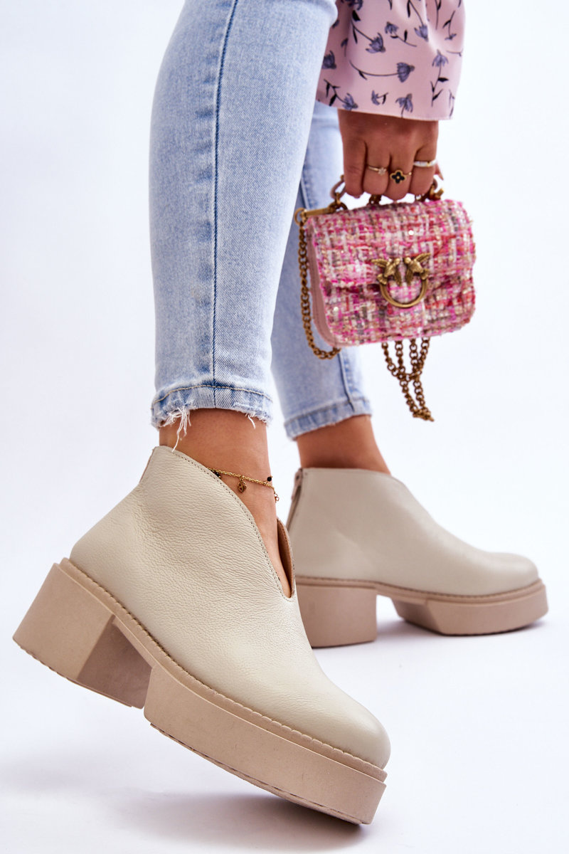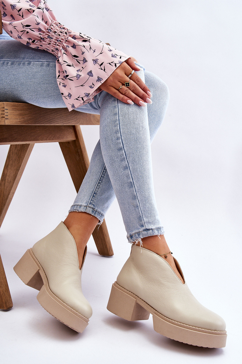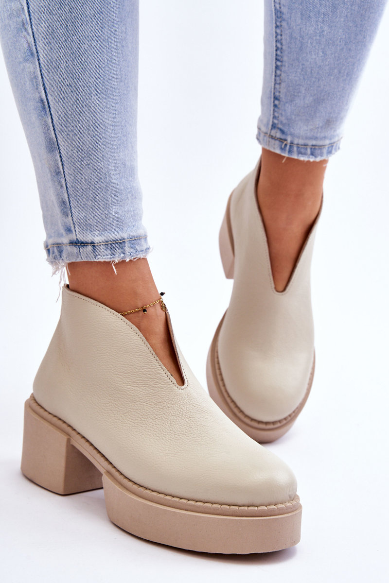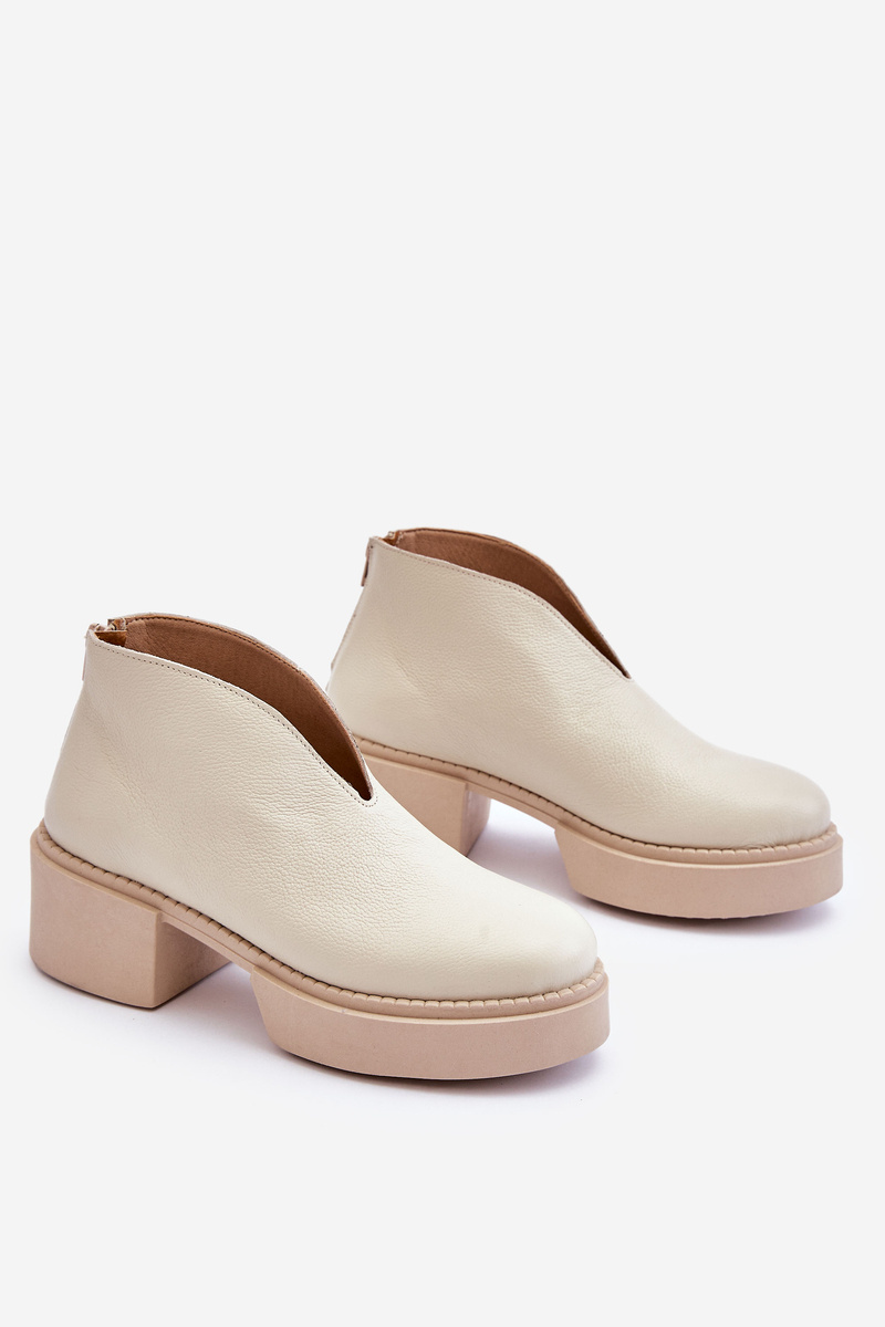 Skórzane Botki Na Masywnym Obcasie Nicole 2795/054 Jasnobeżowe