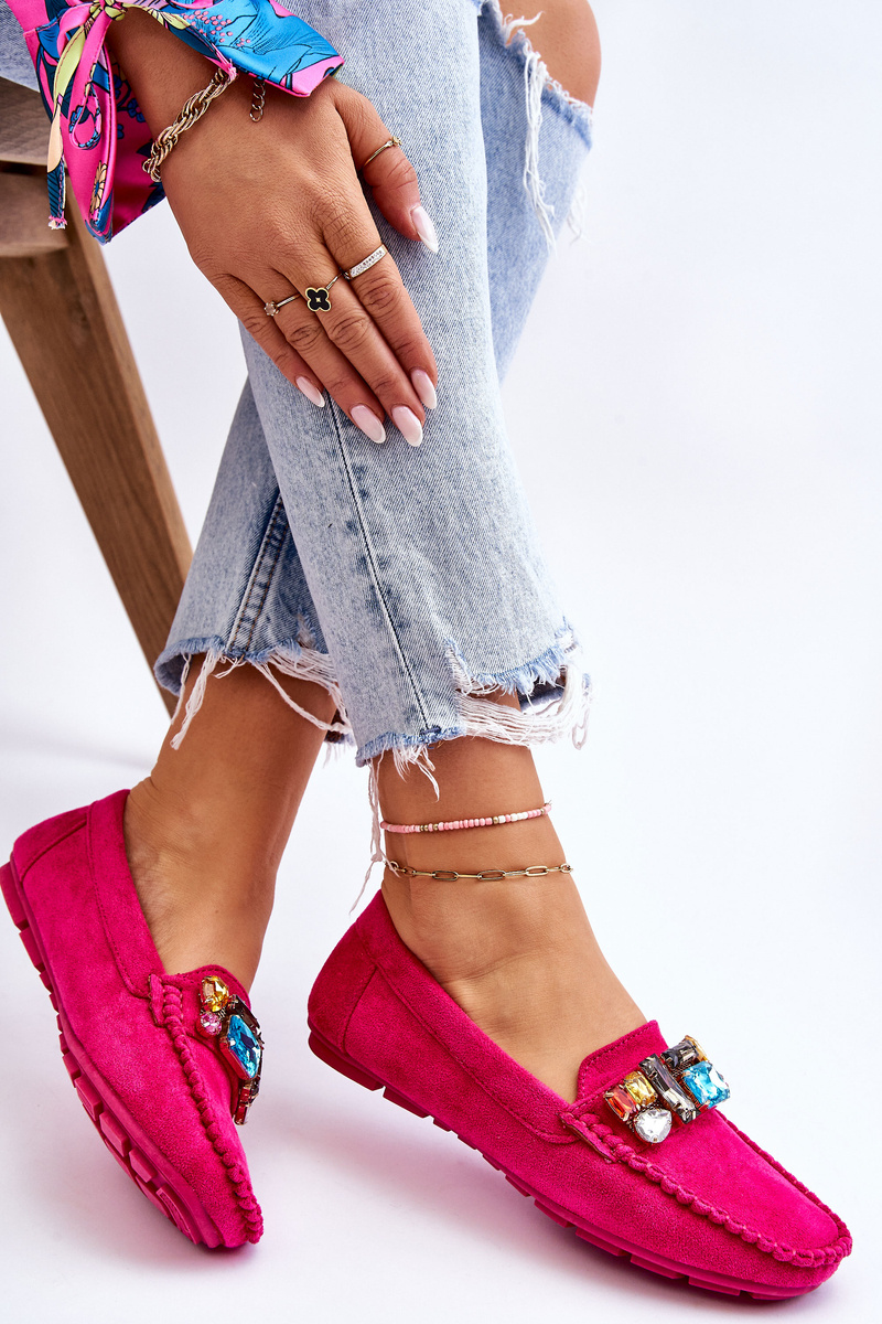Damskie Zamszowe Mokasyny Z Kryształkami Fuksja Lucille