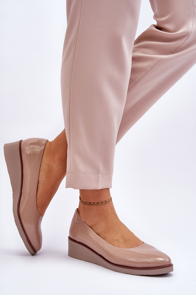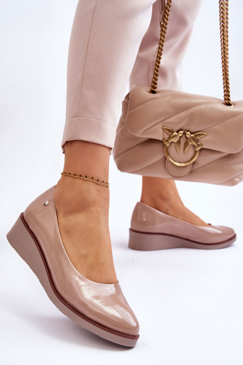 Klasyczne Lakierowane Czółenka Na Koturnie Czarne Paola