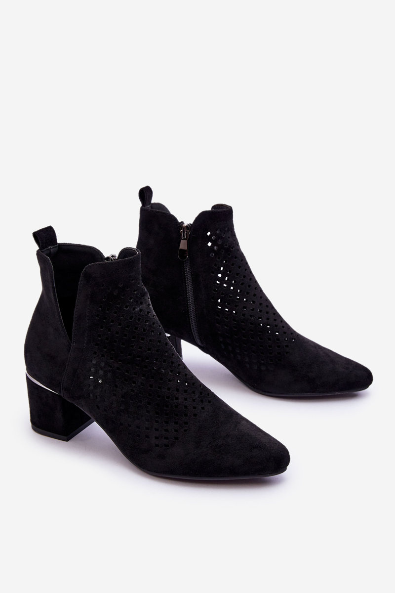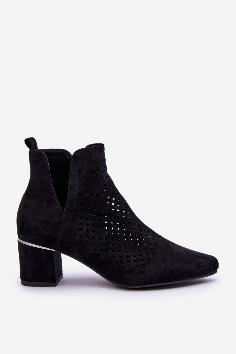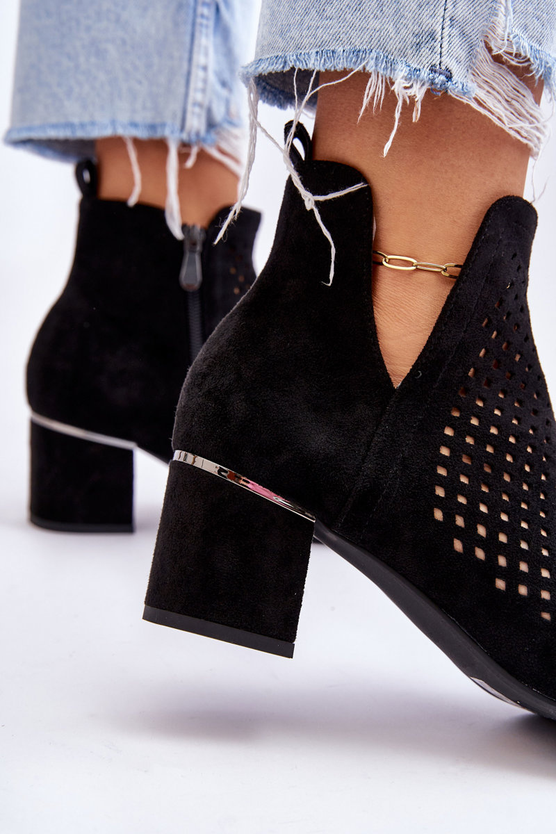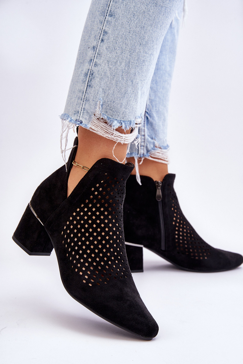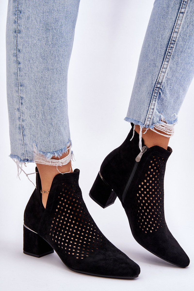 Zamszowe Botki Ażurowe Z Wycięciem Na Obcasie Czarne Blakely