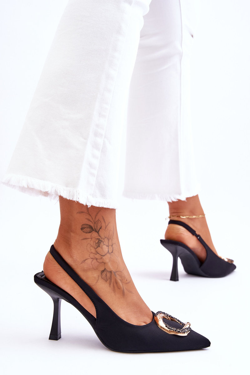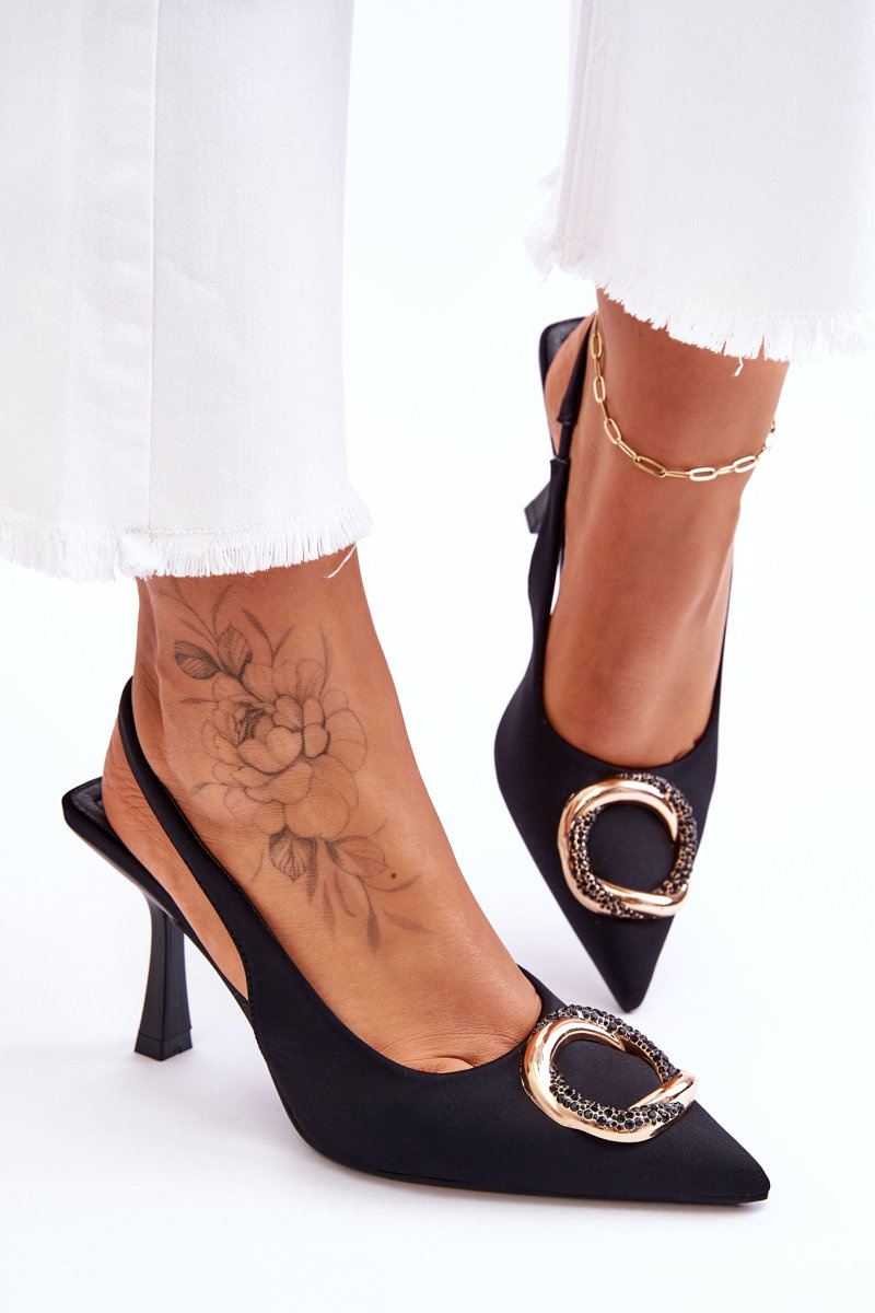 Modne Szpilki Z Ozdobą I Cyrkoniami Czarne Alexia