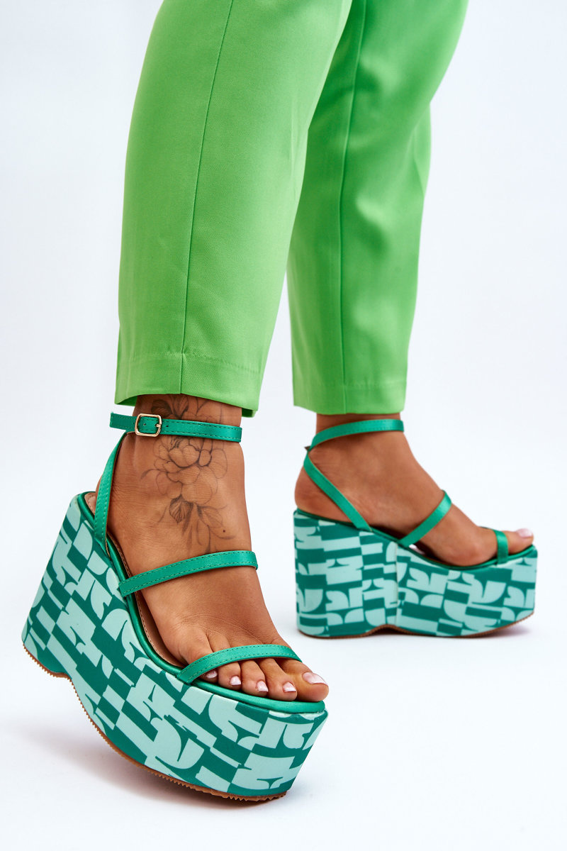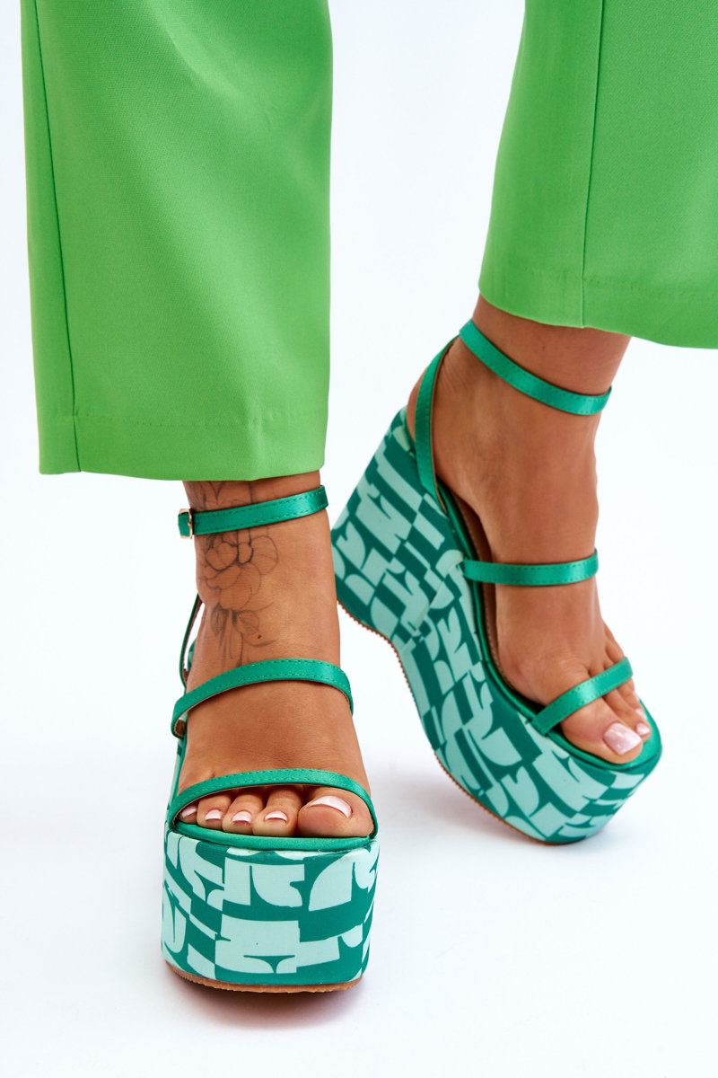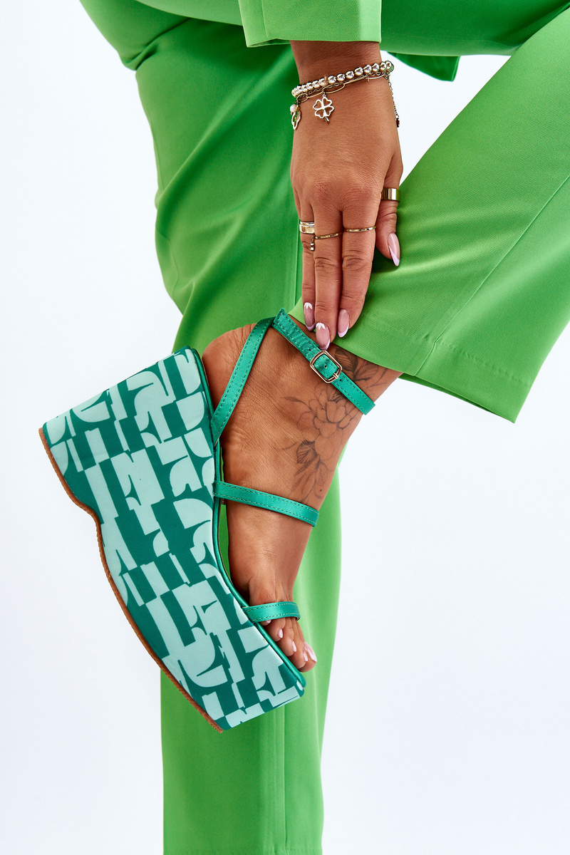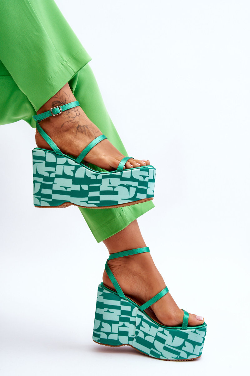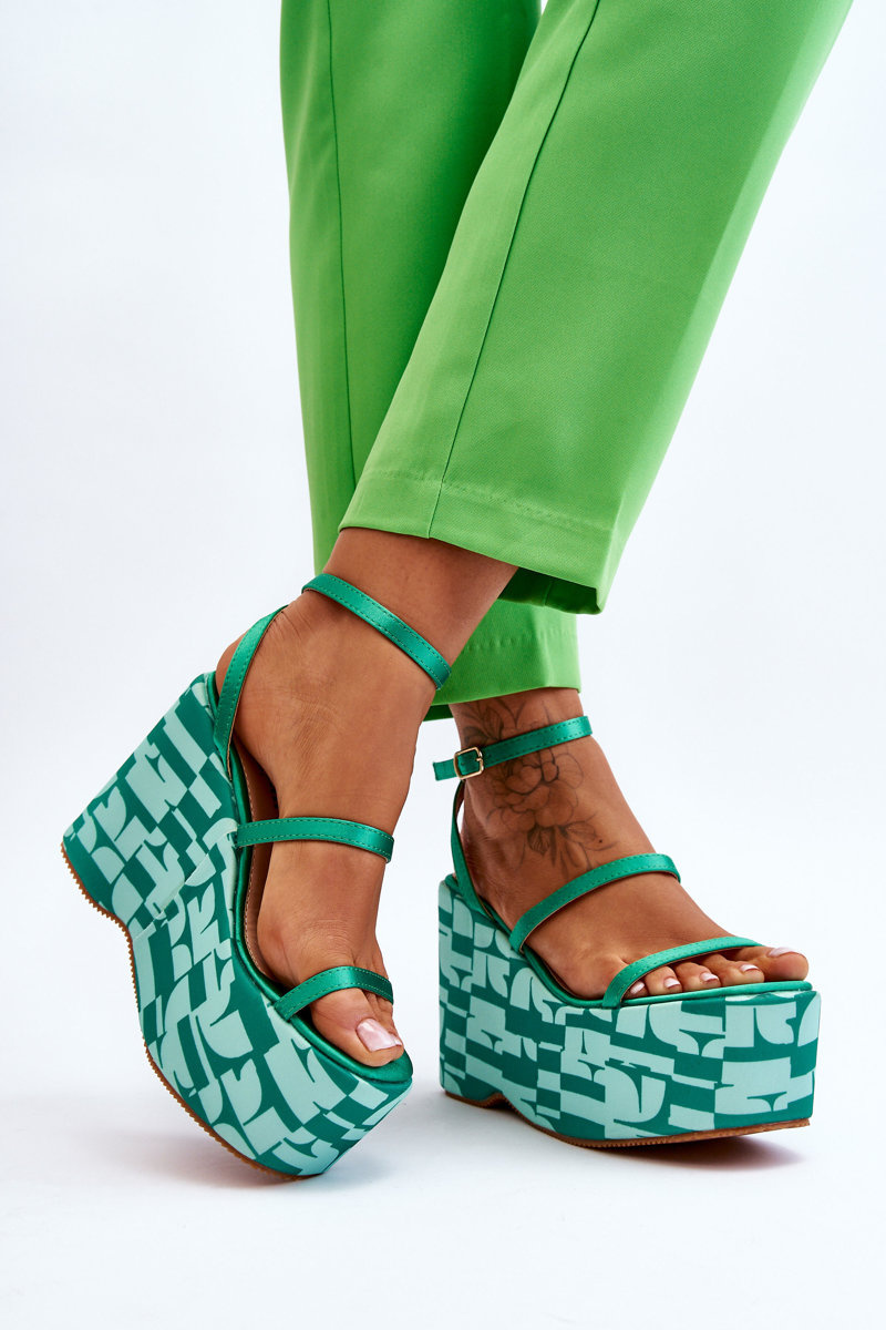 Modne Sandały Na Koturnie We Wzory Zielone Claria
