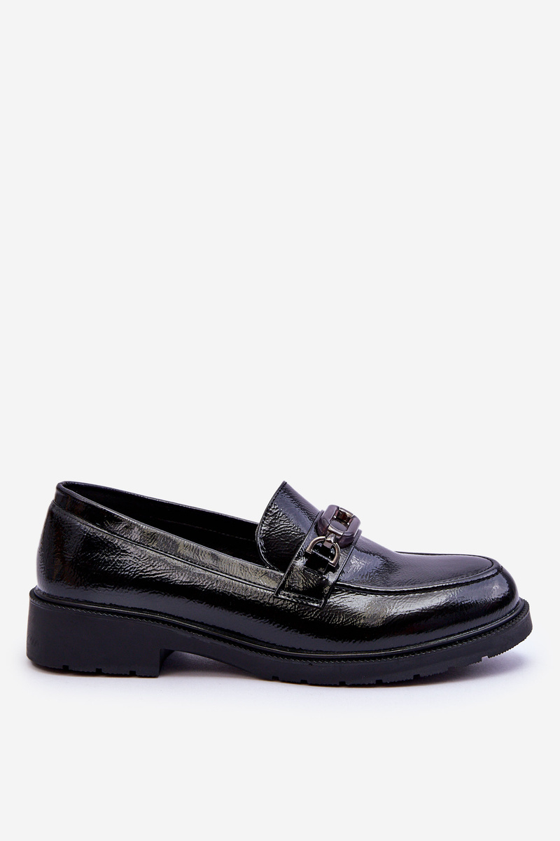Lakierowane Mokasyny Loafersy Z Ozdobą Czarne Maura