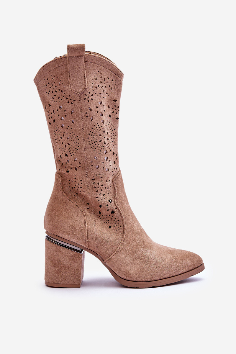 Damskie Zamszowe Ażurowe Kozaki Beżowe Adelia