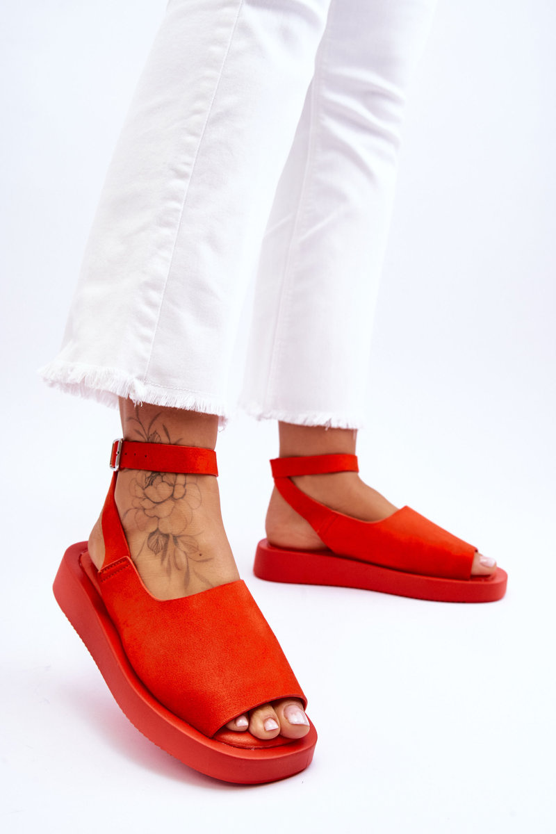 Wygodne Sandały Damskie Na Platformie Ciemnopomarańczowe Rubie