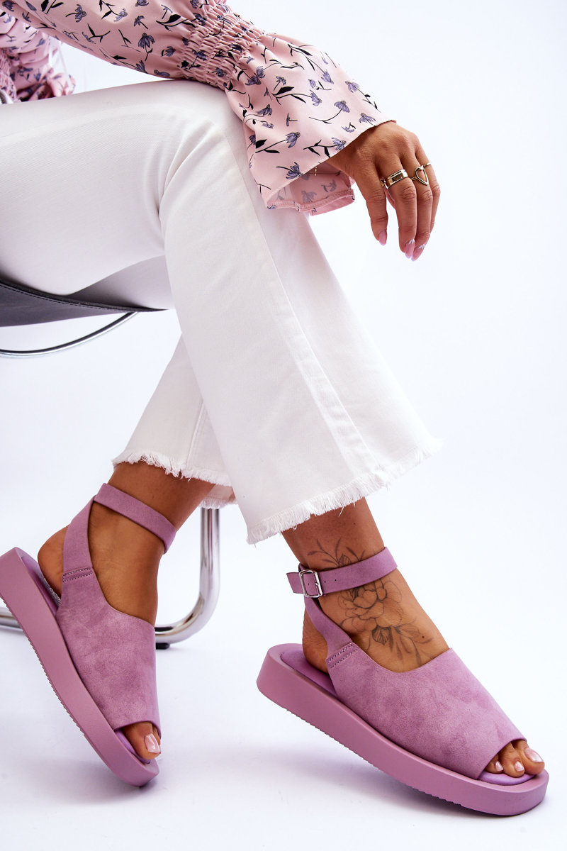 Wygodne Sandały Damskie Na Platformie Fioletowe Rubie