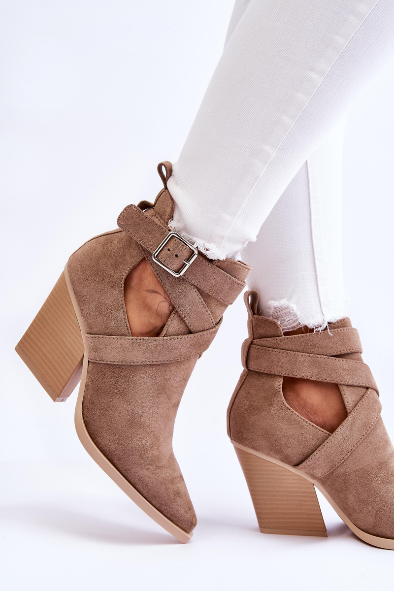 Damskie Zamszowe Botki Kowbojki Ciemnobeżowe Dennise