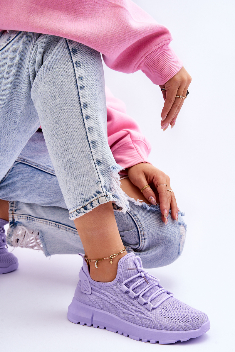 Damskie Wsuwane Buty Sportowe Sneakersy Fioletowe Rosett