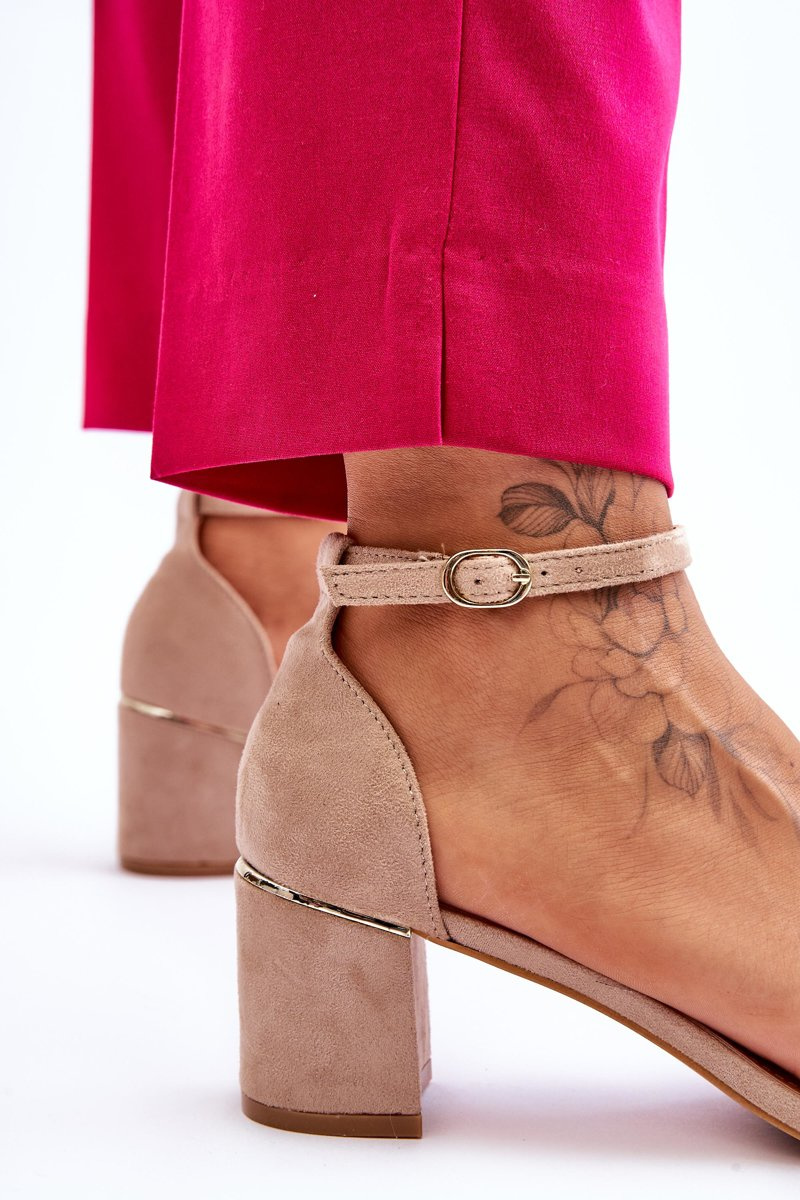 Zamszowe Sandały Na Obcasie Z Ozdobnym Warkocze Beżowe Azela