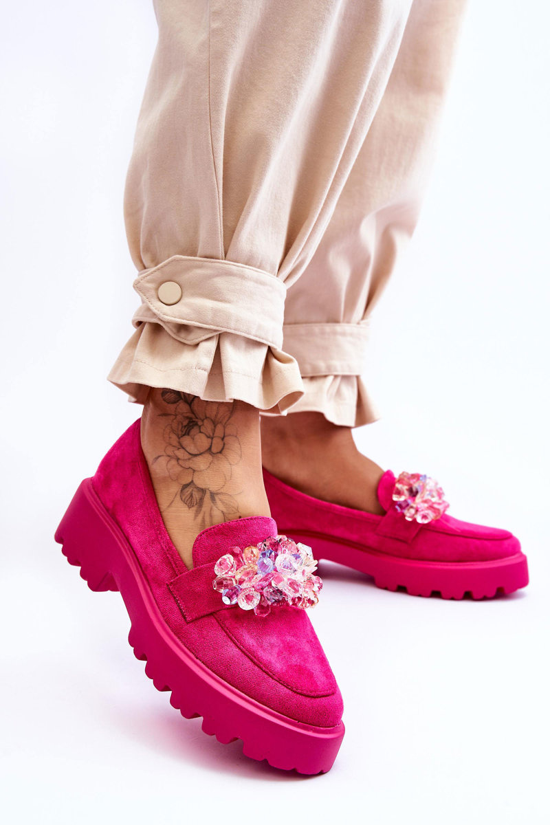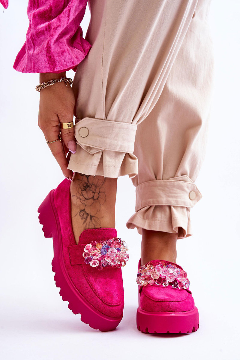 Damskie Mokasyny Na Platformie Z Ozdobami Fuksja Brenda