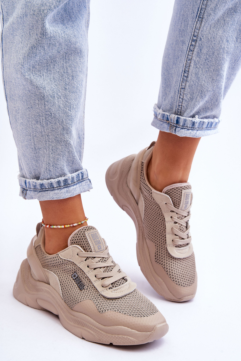 Damskie Materiałowe Buty Sportowe Memory Foam System Big Star LL274A066 Beżowe