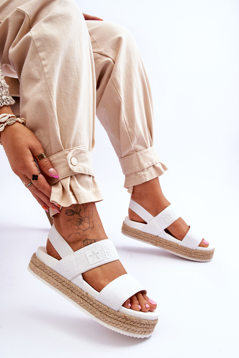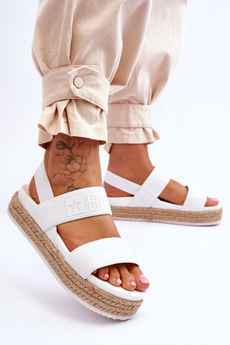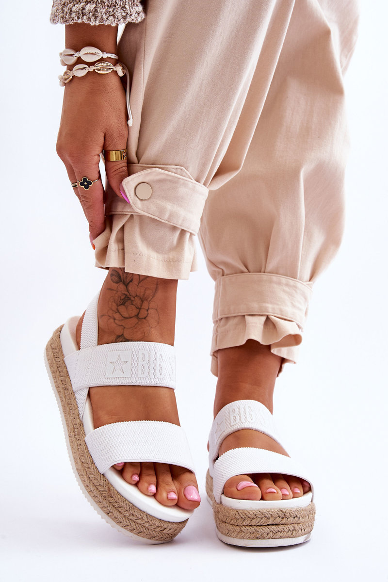 Lekkie, damskie sandały od marki Big Star zostały wykonane z materiału tekstylnego. Model ten jest wsuwany. Zakładanie obuwia ułatwi elastyczna gumka. Sandały osadzono na masywnej platformie ozdobionej jutową plecionką. Sandałki posiadają wkładkę z tworzywa sztucznego. Koniecznie sprawdź pozostałe modele sandałek od marki Big Star! Przy wyborze rozmiaru prosimy sugerować się tabelą rozmiarów.
