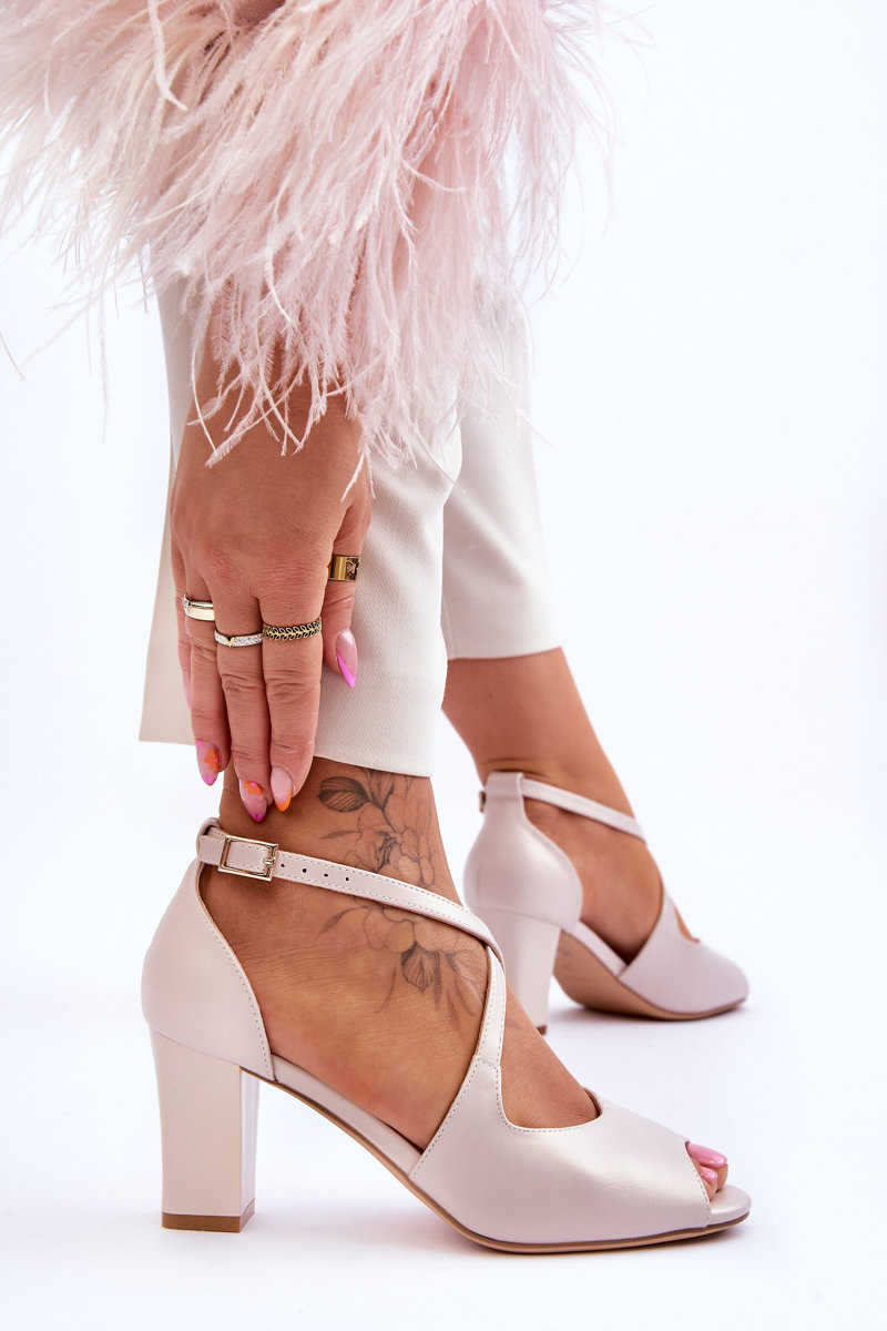 Damskie Sandały Na Słupku Sergio Leone SK864 Perłowe Beżowe