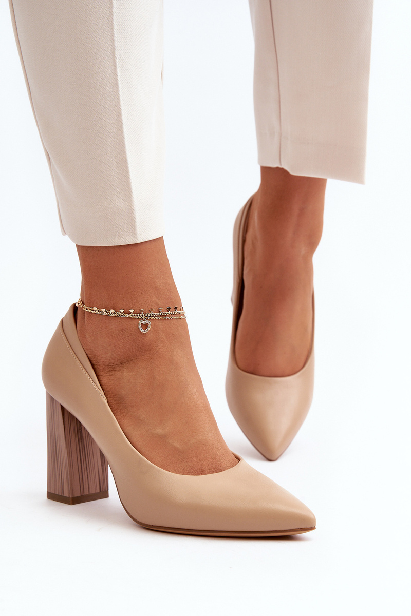 Eleganckie Czółenka Na Ozdobnym Słupku Sergio Leone PB217 Ciemnobeżowe