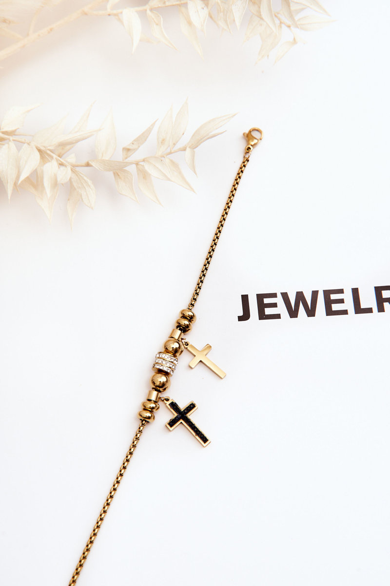 Elegancka Damska Bransoletka Krzyżyki Z Cyrkoniami Złota