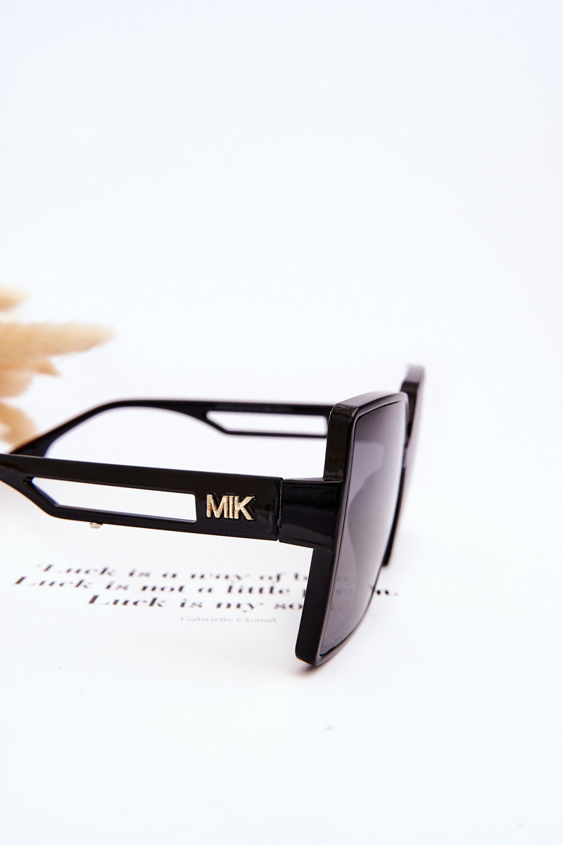Niezwykłe, damskie okulary o kwadratowym kształcie zostały wykonane z tworzywa sztucznego. Model ten posiada zwężane zauszniki z wycięciami i emblematem. Duże soczewki osadzono w ramkach. Idealny model na nadchodzący sezon! Informacja od producenta: ochrona UV, kategoria 3.