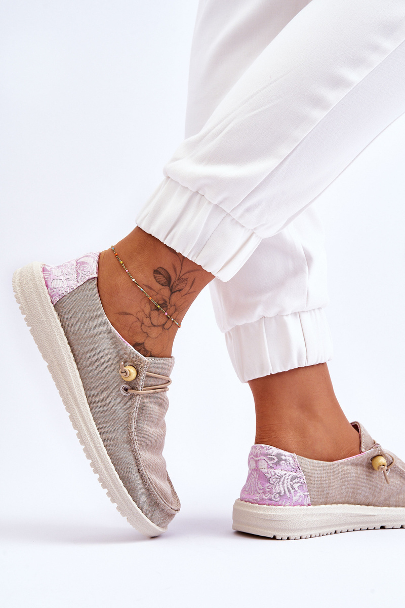 Damskie Wsuwane Materiałowe Tenisówki Beżowe Kenza
