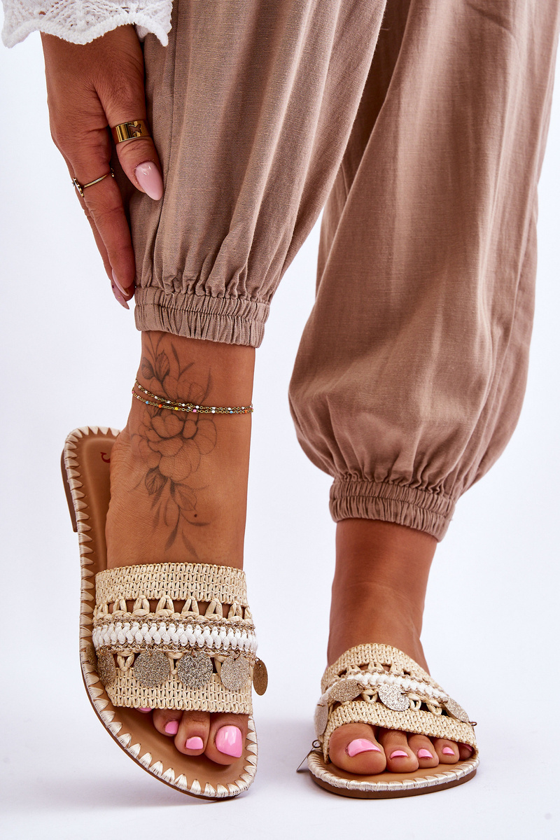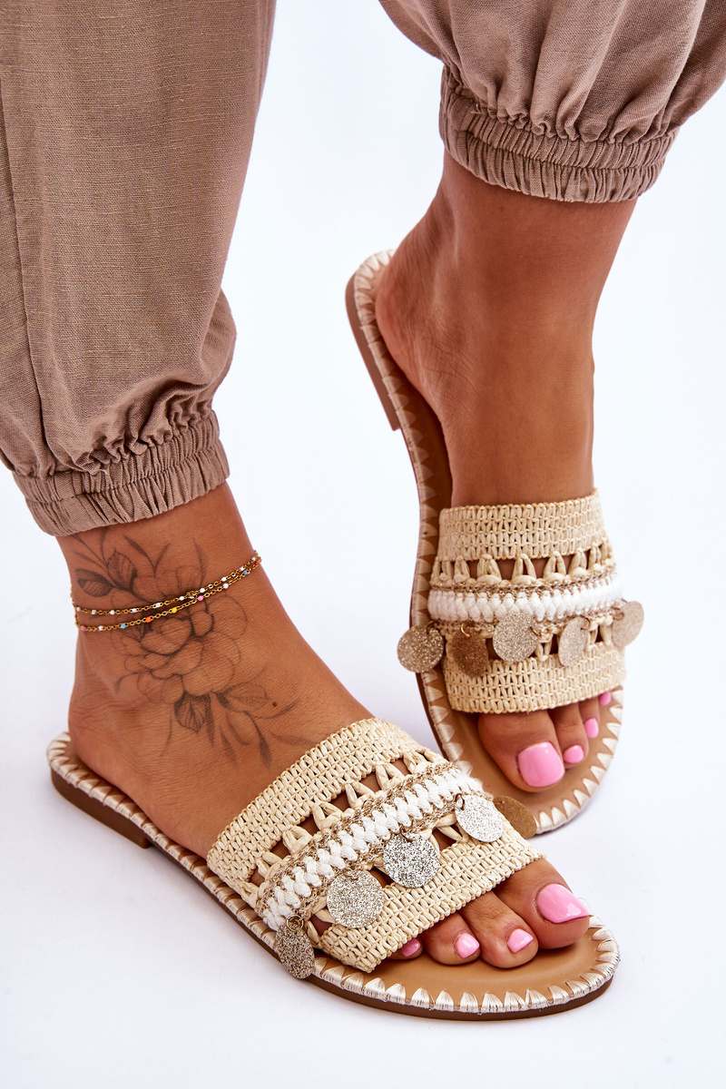 Damskie Plecione Zdobione Klapki Beżowe Millano