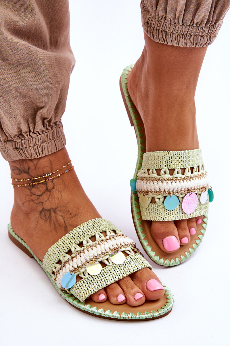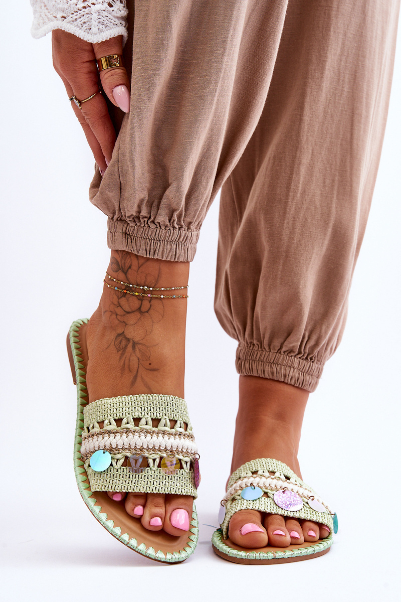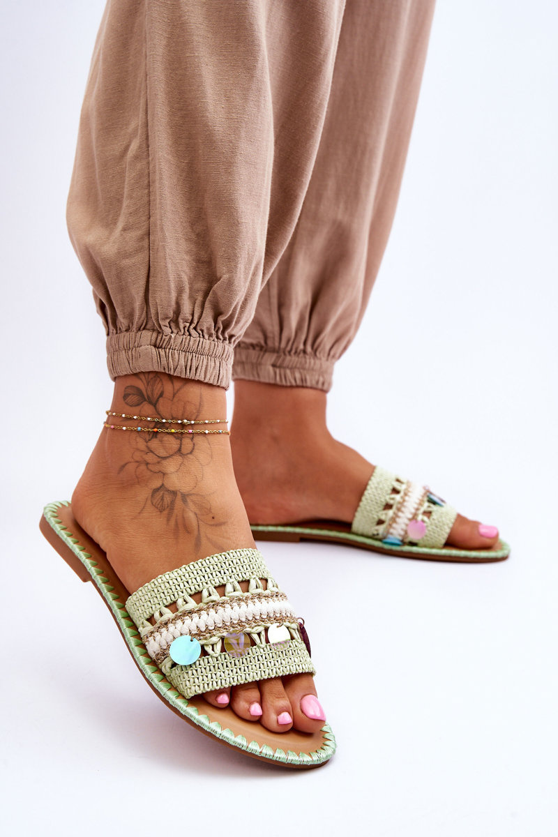 Damskie Plecione Zdobione Klapki Zielone Millano