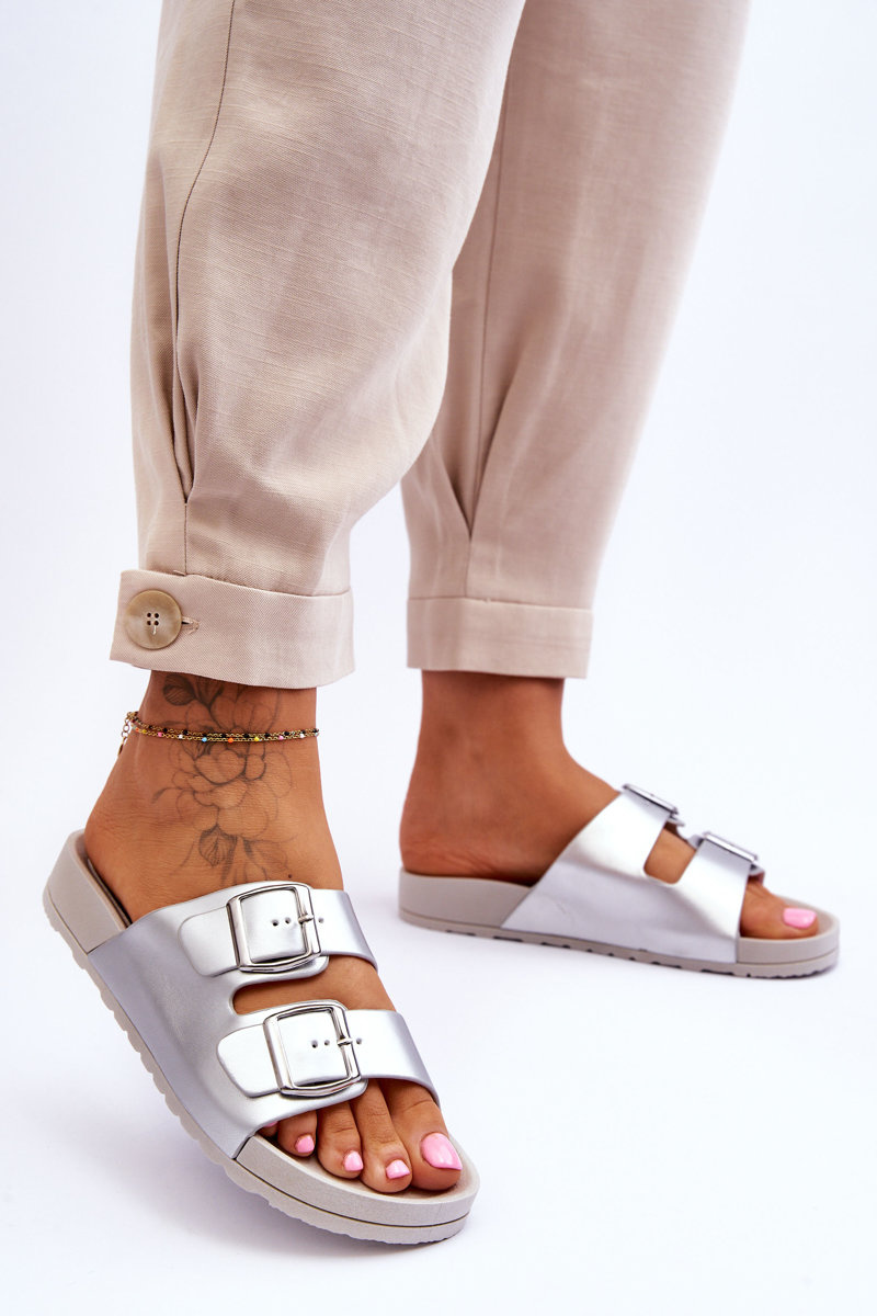 Damskie Klapki Na Platformie Srebrne Vertigo