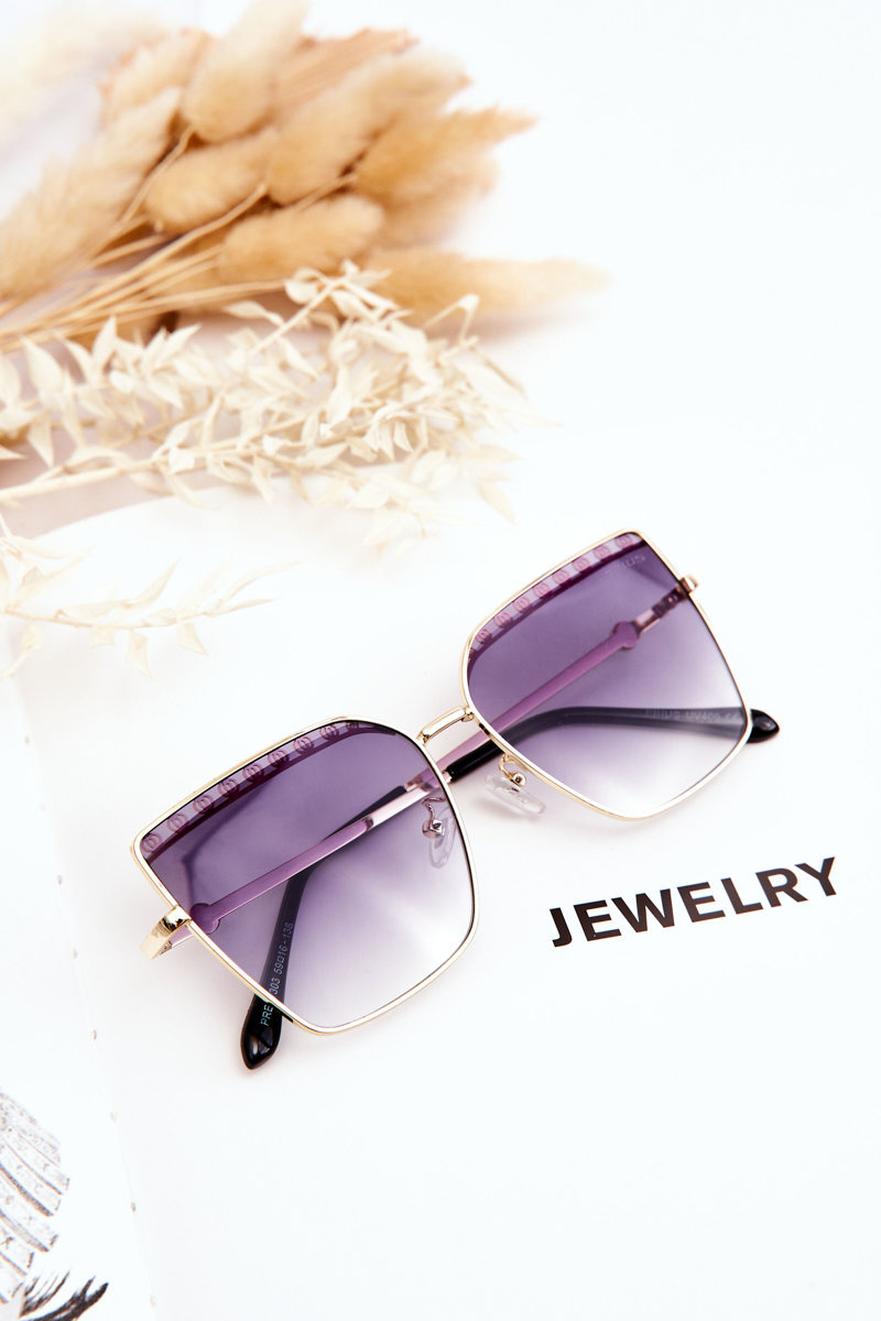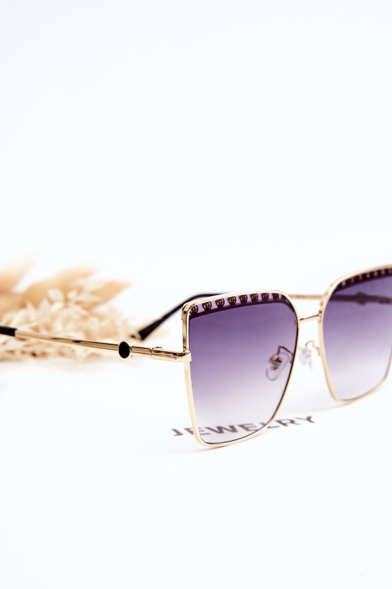 Wyjątkowe okulary przeciwsłoneczne zostały wykonane z połączenia tworzywa sztucznego oraz metalu. Model w stylu motyla z pięknym zdobieniem od wewnętrznej strony na górze soczewki. Dodatkowo okulary posiadają cienkie oprawki i zauszniki. Silikonowe noski pozwolą na odpowiednie dopasowanie okularów. Informacja od producenta: UV 400, kategoria 3.