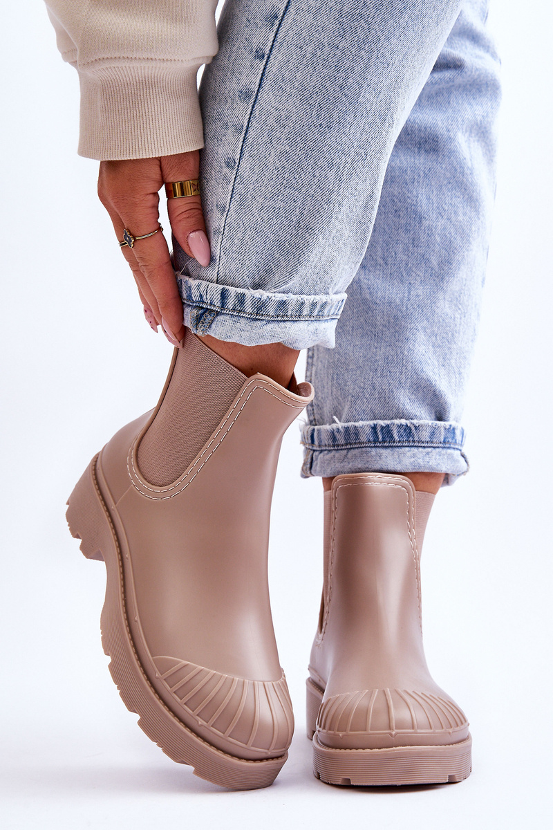 Wsuwane Gumowe Botki Kalosze Sztyblety Beżowe Carme