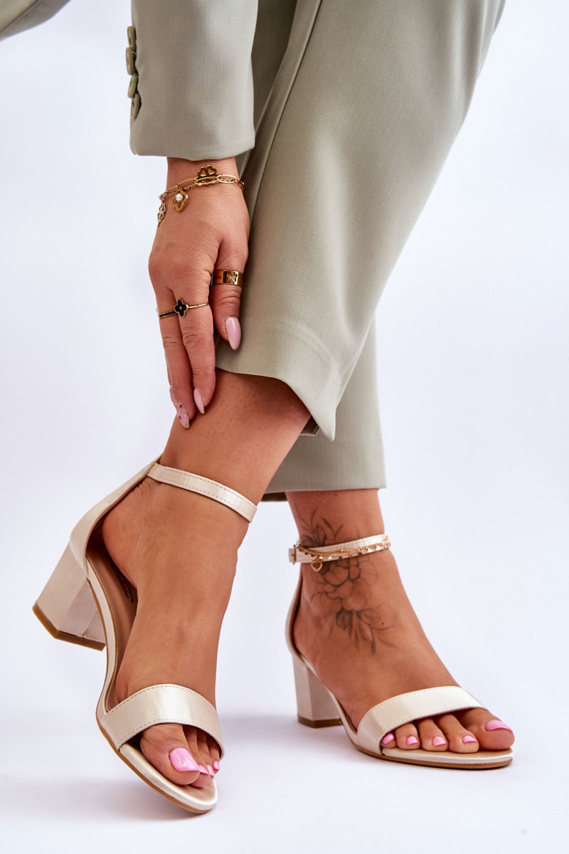 Satynowe Sandały Na Niskim Obcasie Beżowe Juliet