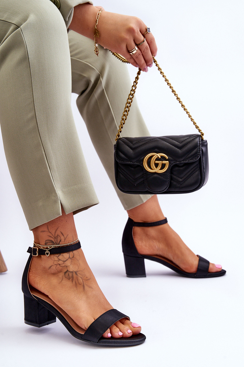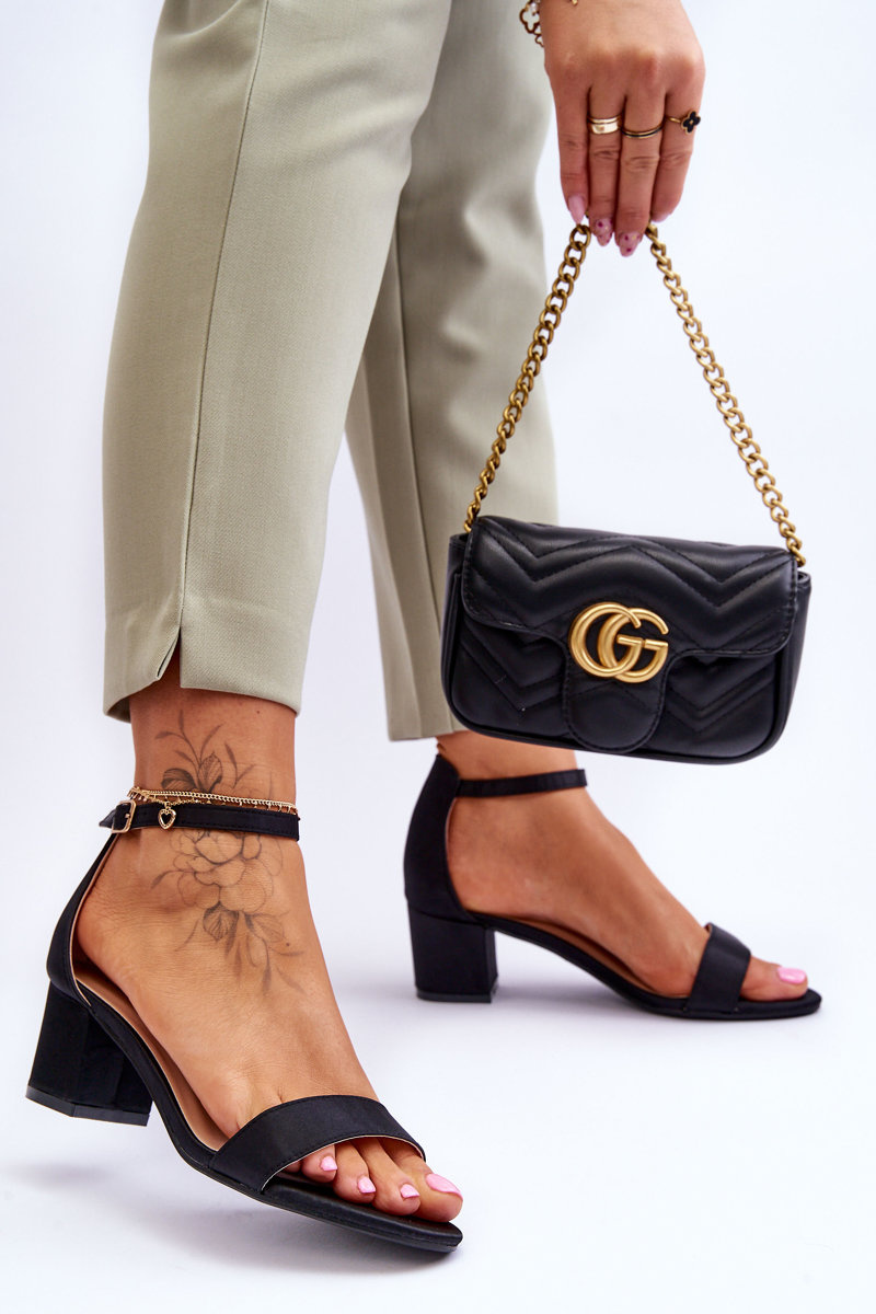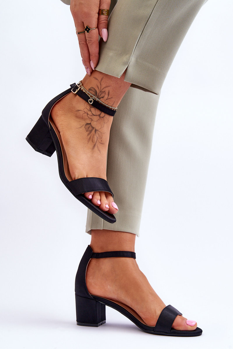 Satynowe Sandały Na Niskim Obcasie Czarne Juliet