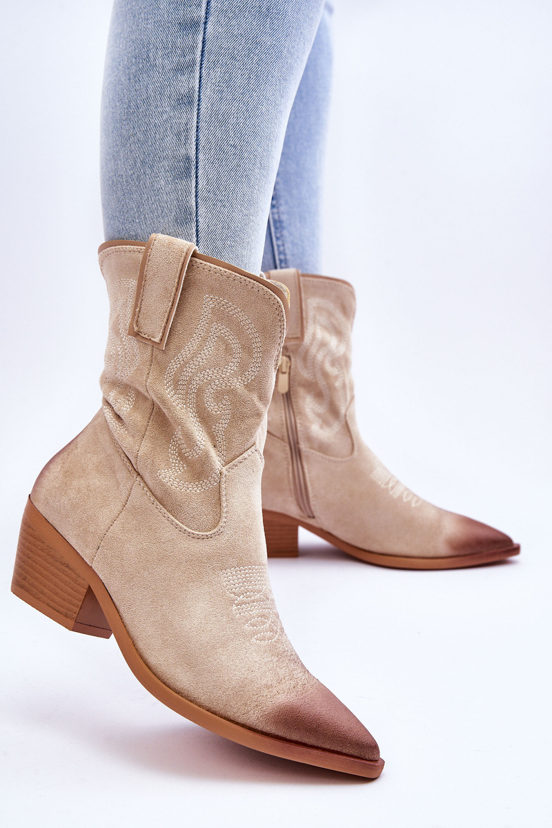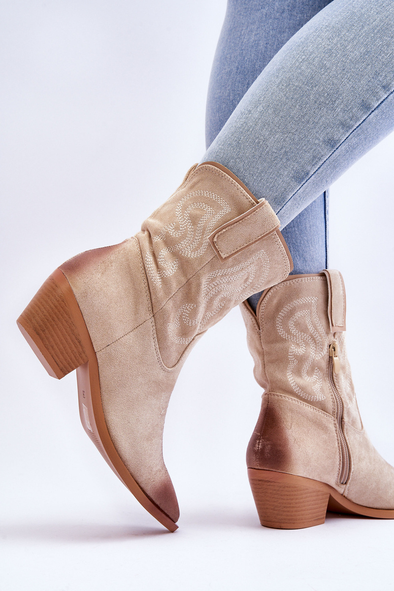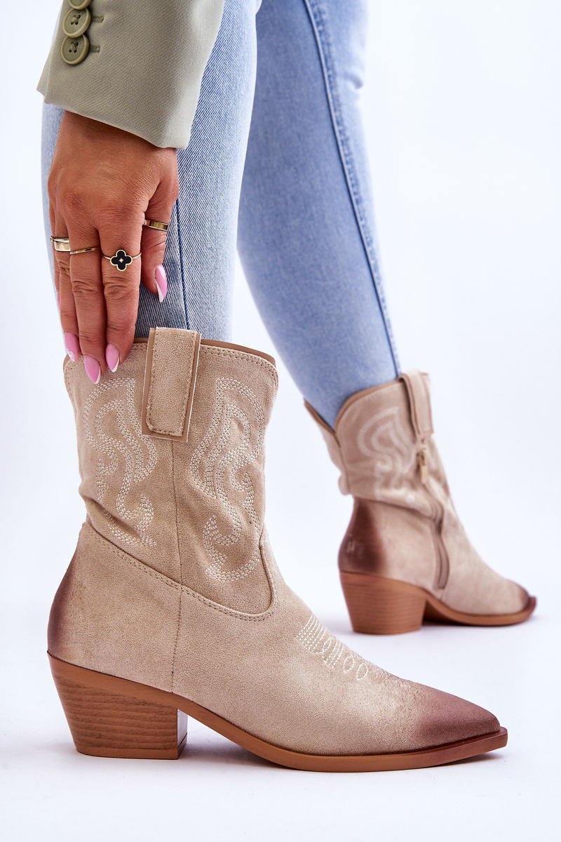 Zamszowe Botki Kowbojki Beżowe Klaira
