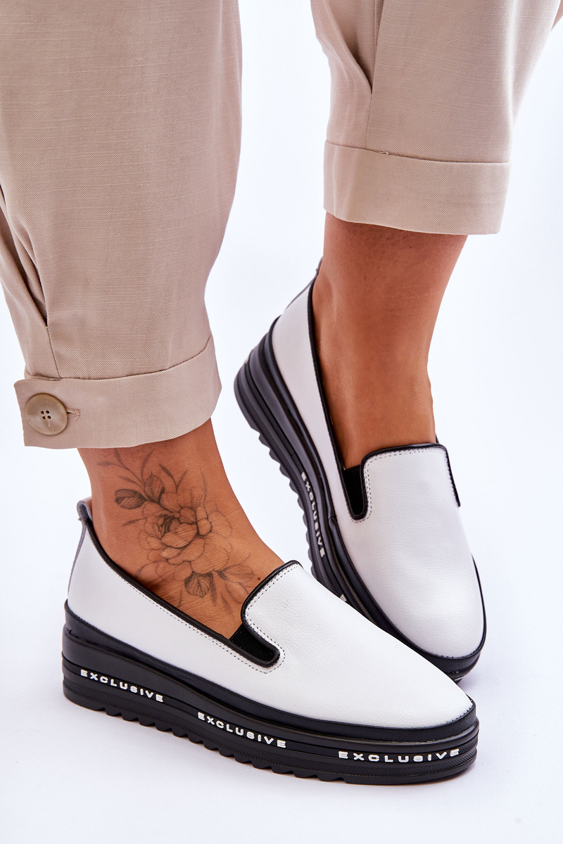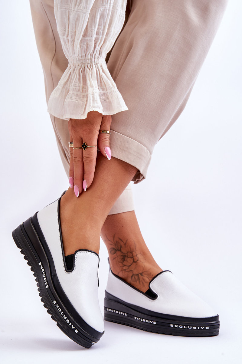 Wsuwane Skórzane Trampki Na Platformie Białe Madeline