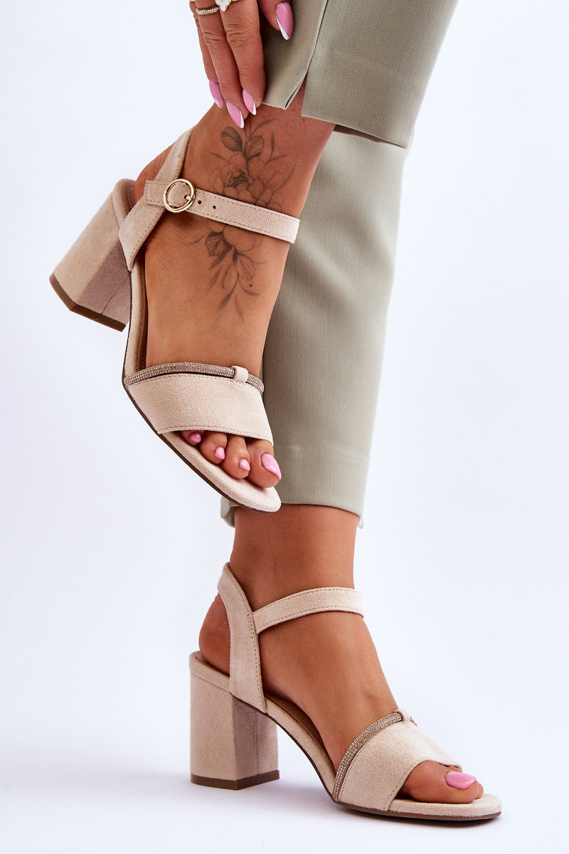 Damskie Zamszowe Sandały Na Niskim Słupku Beżowe Loredo