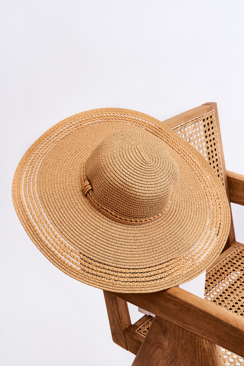 Klasyczny, gładki kapelusz damski został wykonany w 100% z papieru. Rondo posiada prześwitujący wzorek. Na zdobinie umieszczono pasek w kolorze kapelusza. Dodatkowo wewnątrz znajduje się wstążka umożliwiająca odpowiednie dopasowanie kapelusza do obwodu głowy.