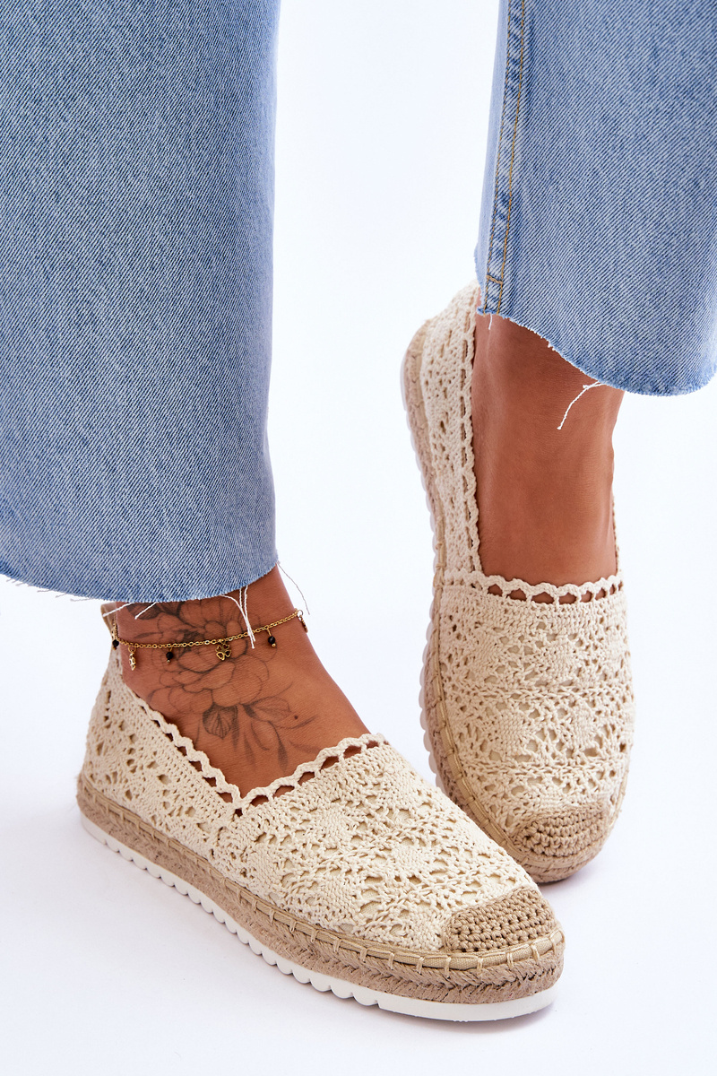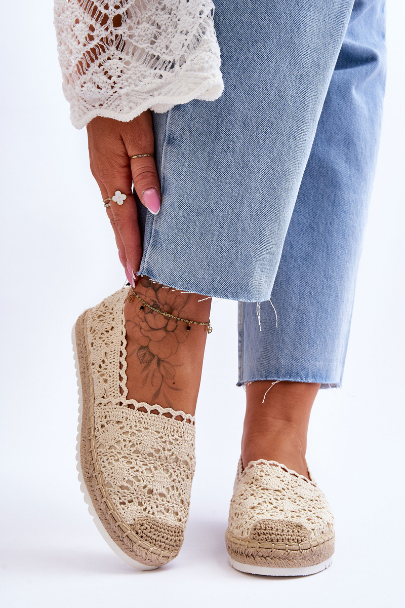 Koronkowe Wsuwane Espadryle Beżowe Blanco