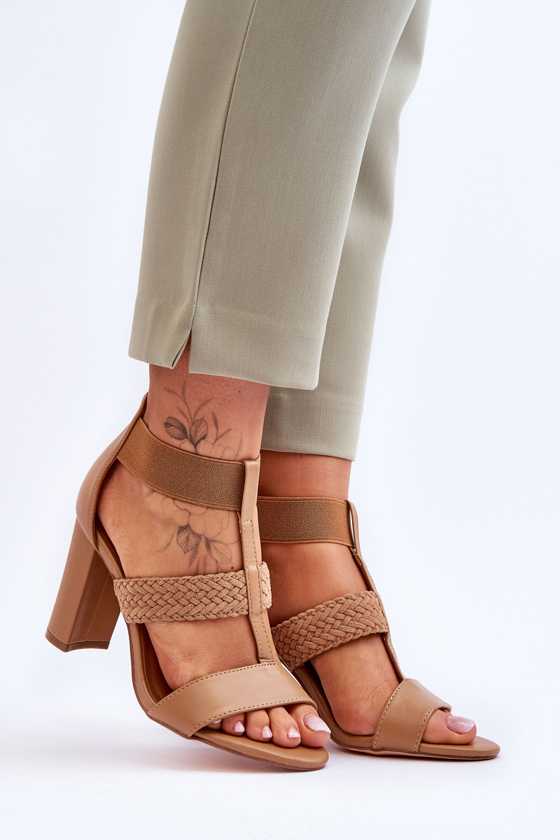 Skórzane Sandały Botki Na Obcasie Camel Marren