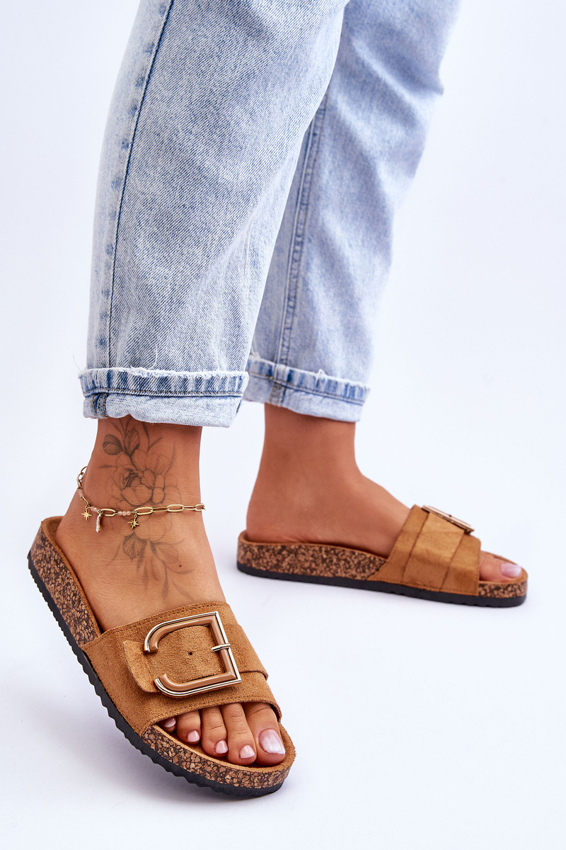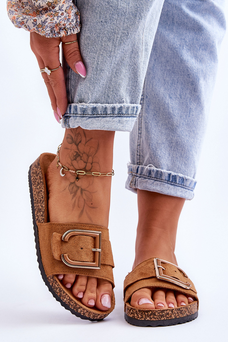 Damskie Klapki Zamszowe Na Platformie Camel Festil