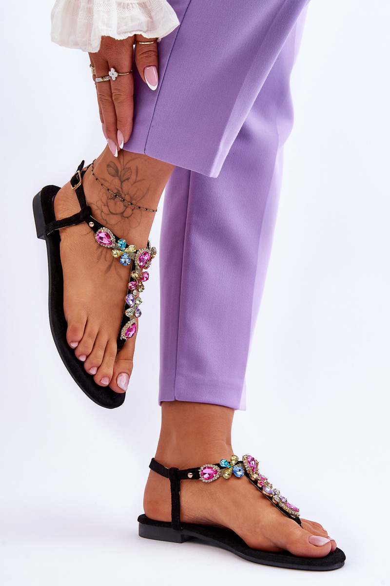 Zamszowe Sandały Japonki Z Kamieniami Czarne Frency