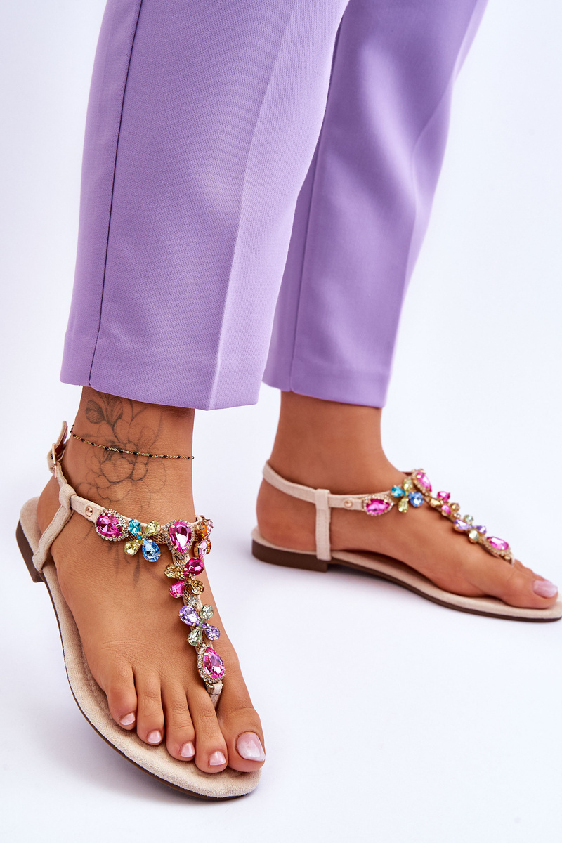 Zamszowe Sandały Japonki Z Kamieniami Beżowe Frency