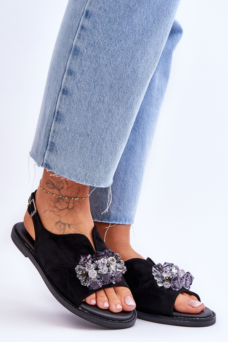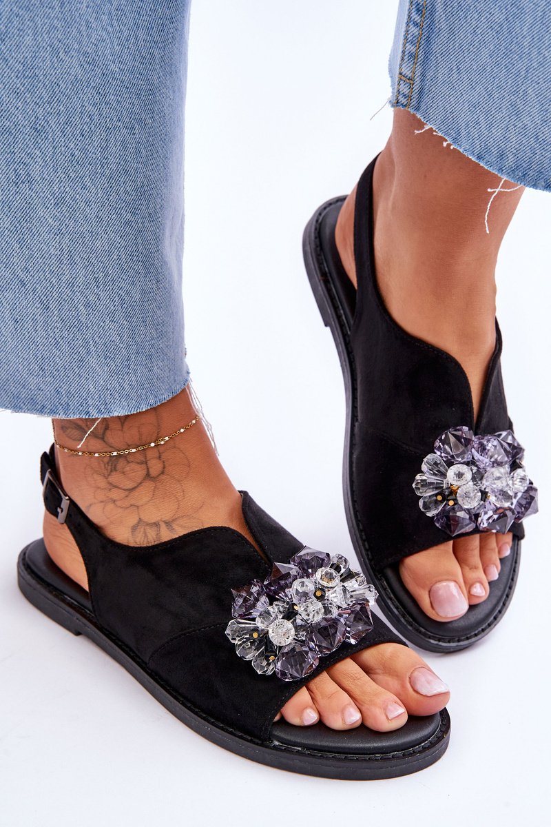 Damskie Zamszowe Sandały Z Kamieniami Czarne Mersea