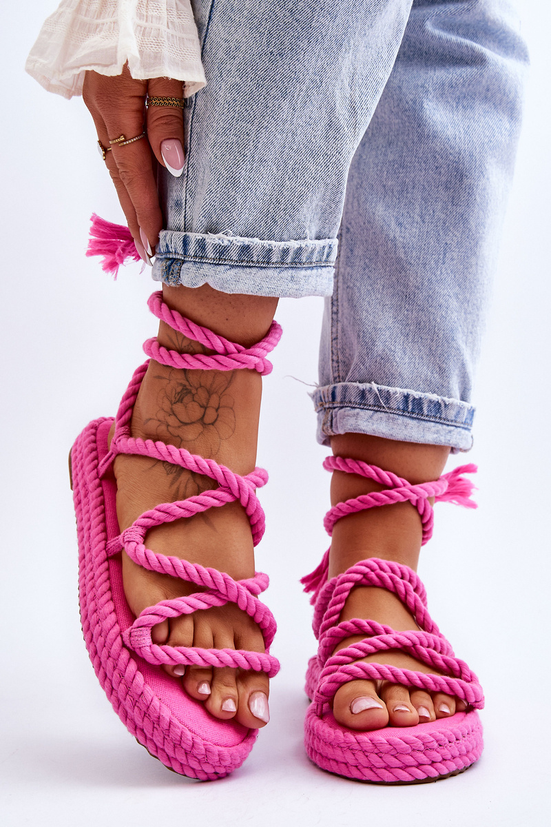 Wiązane Sandałki Na Masywnej Platformie Różowe Can't Wait