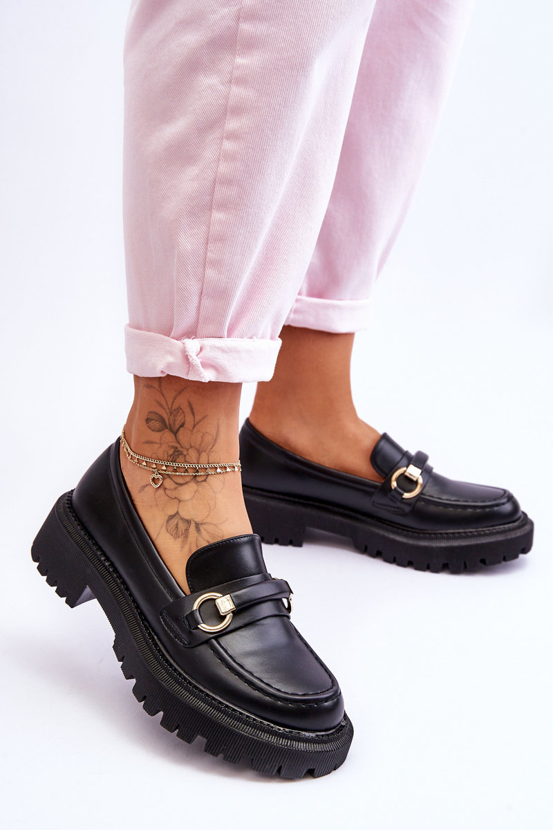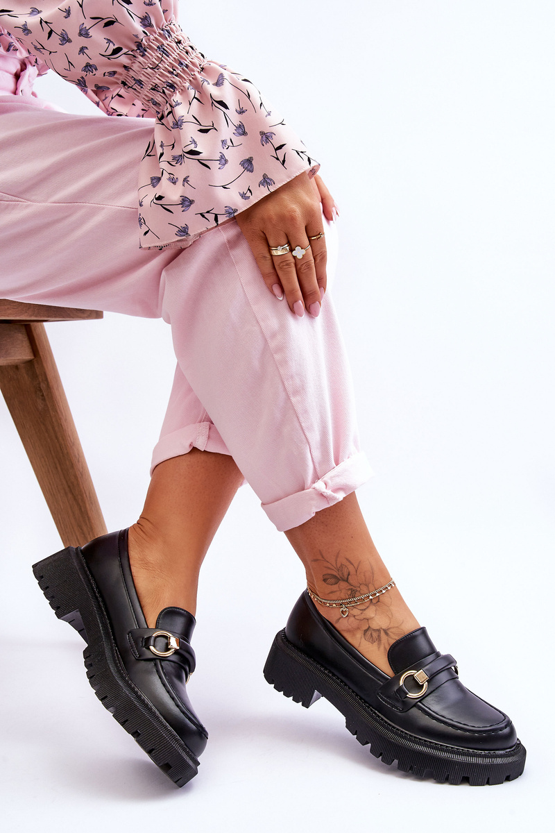 Damskie Mokasyny Na Masywnej Platformie Czarne Calypso