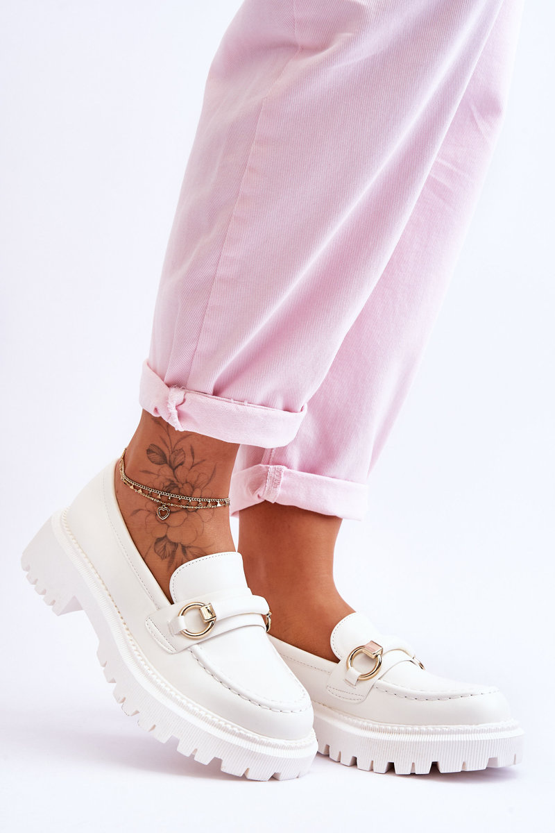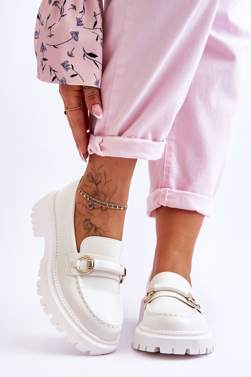 Damskie Mokasyny Na Masywnej Platformie Białe Calypso