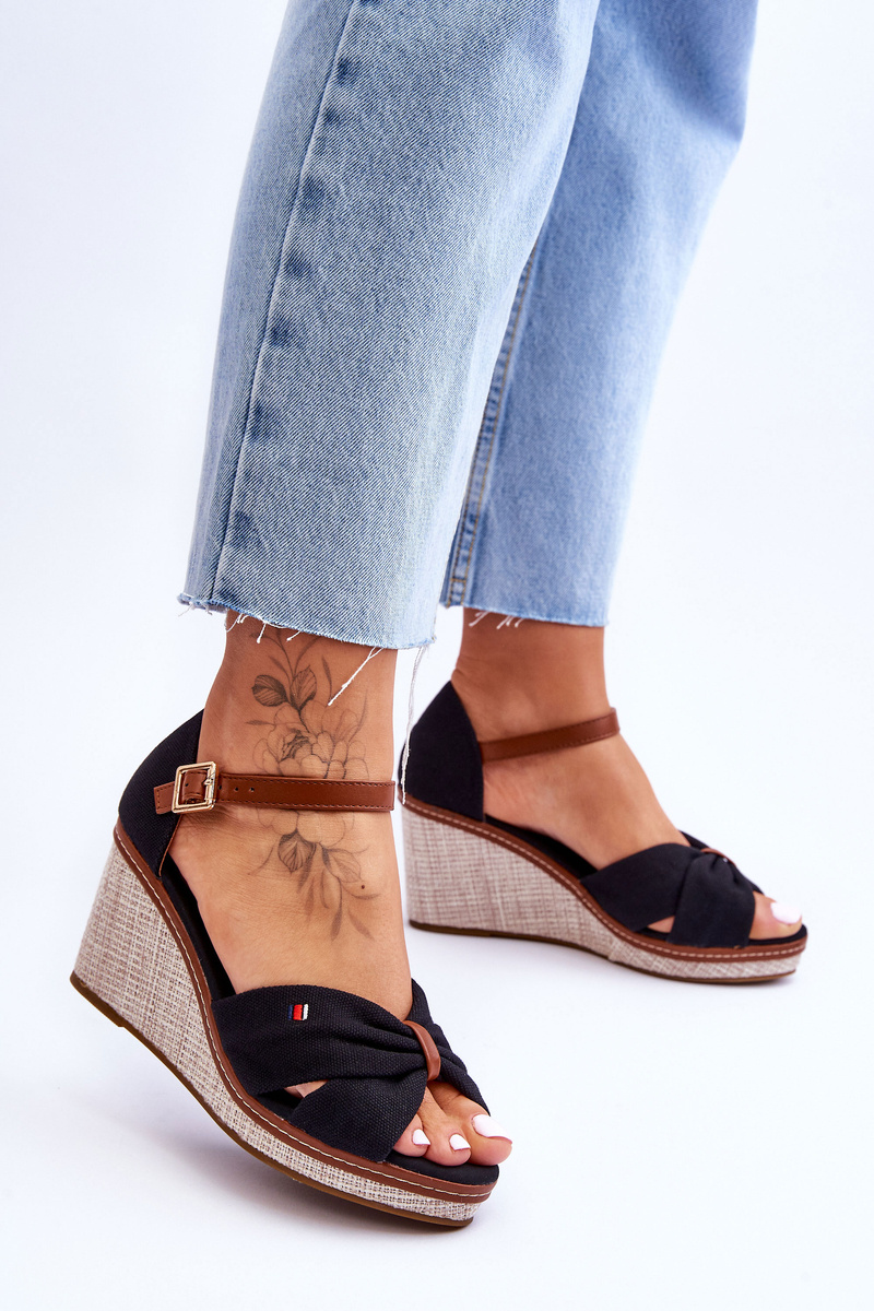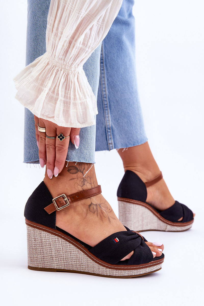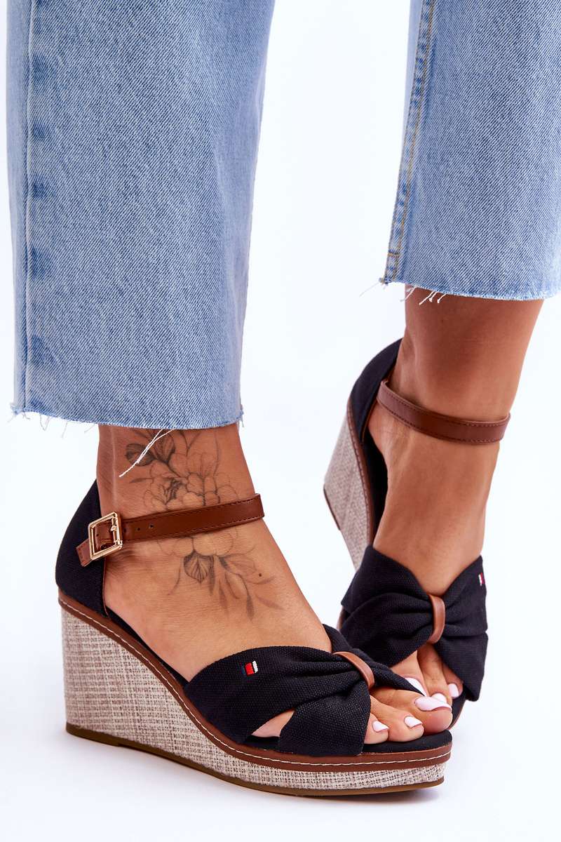 Sandały Damskie Na Plecionym Koturnie Czarne Judith