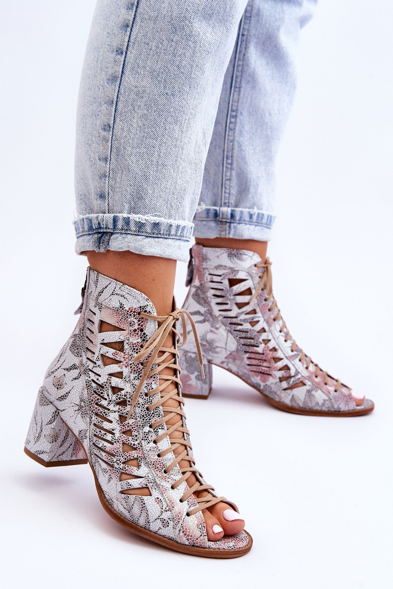 Skórzane Ażurowe Botki Maciejka 04040-11 Białe